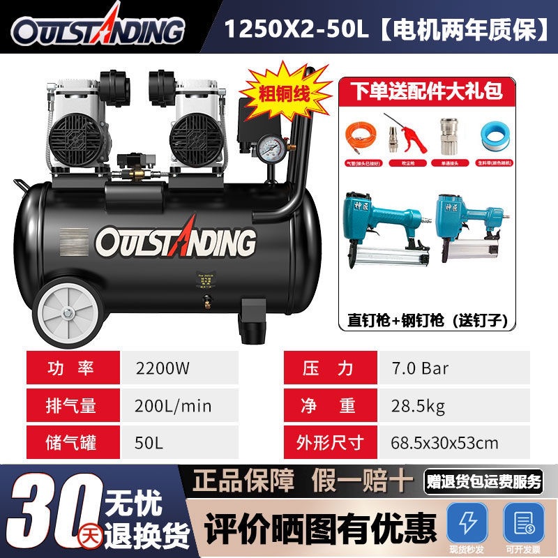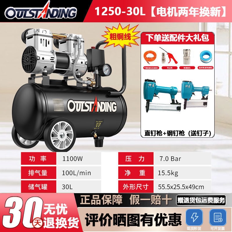 • 두꺼운 구리 1250-30L [튜브 7m개 + 직선 못총 강철 못총]_[2년 이내 새 모터 교체 보장, 17년 동안 공기 압축기에 집중]
