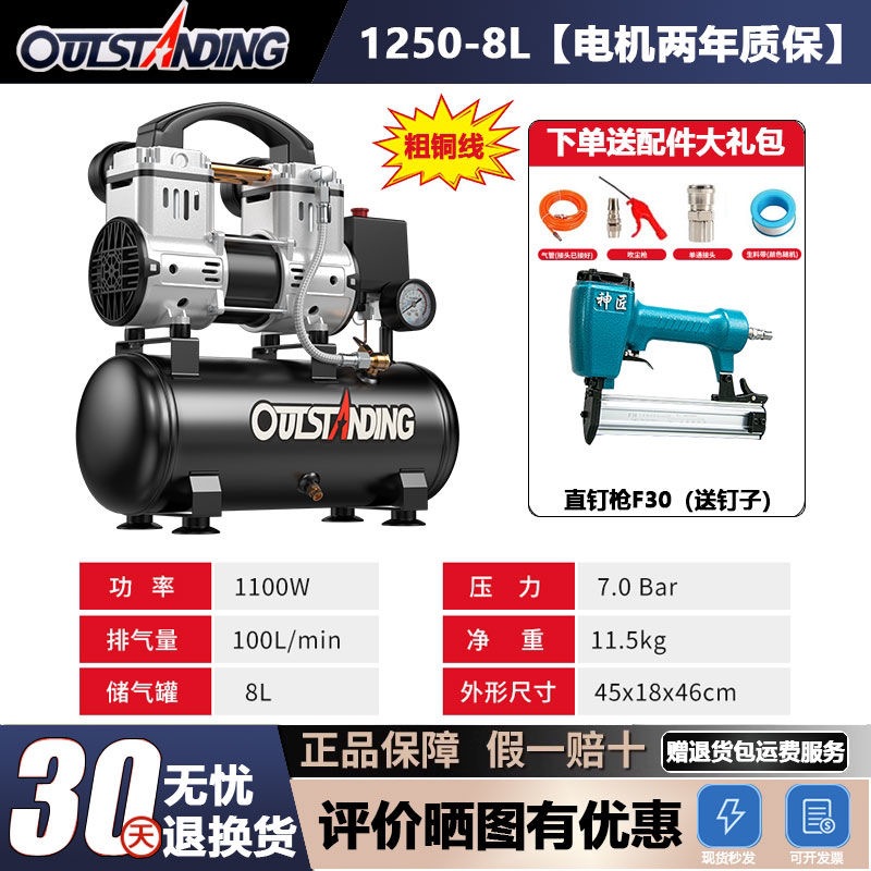 • 두꺼운 구리 1250-8L [튜브 7m개 + 직선 못총 강철 못총]_[2년 이내 새 모터 교체 보장, 17년 동안 공기 압축기에 집중]