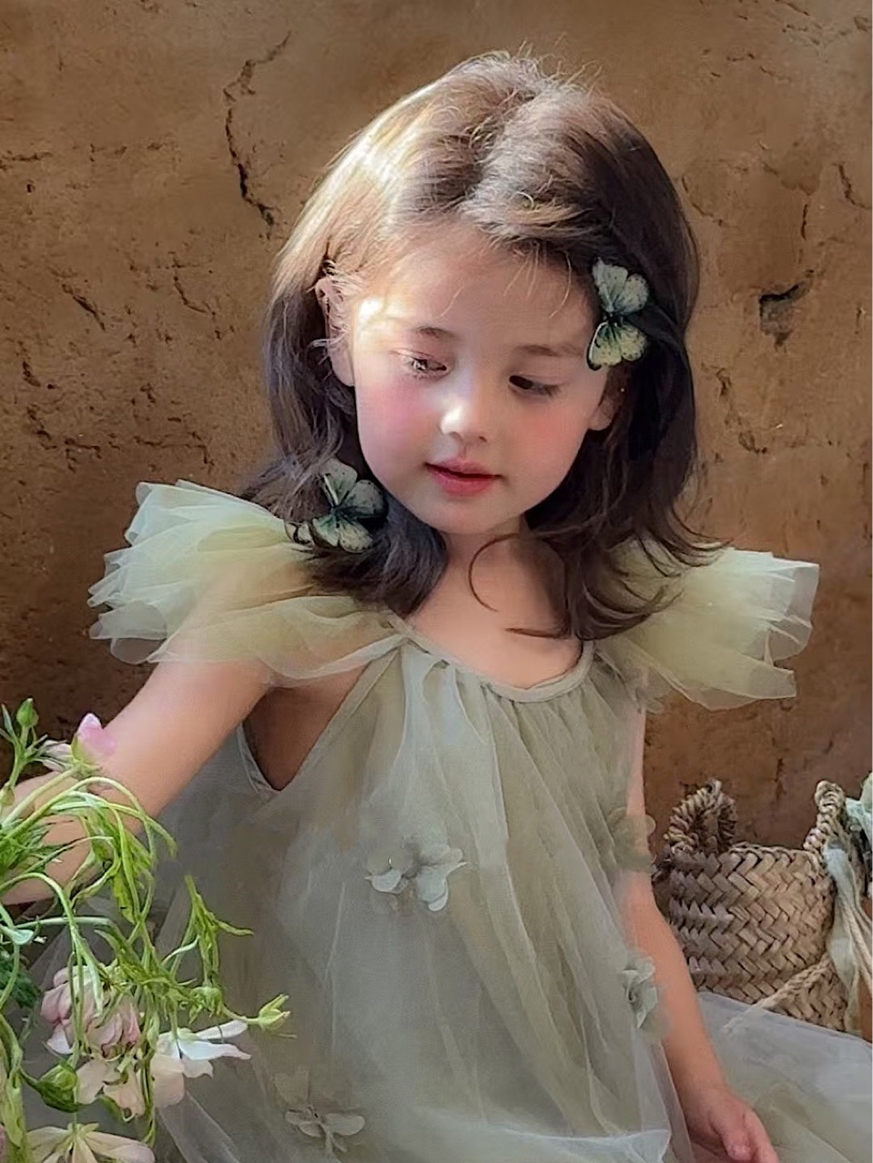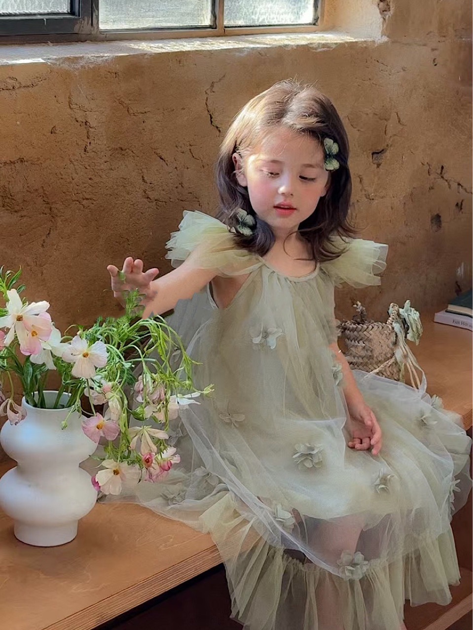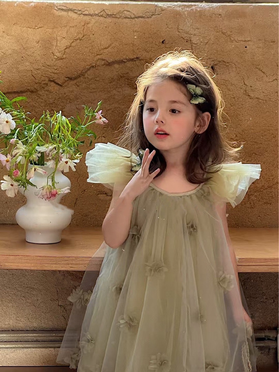 여자 드레스 어린이 독특한 슈퍼 멋진 꽃 스커트 여름 드레스 2025 새로운 얇은 플라이 슬리브 드레스