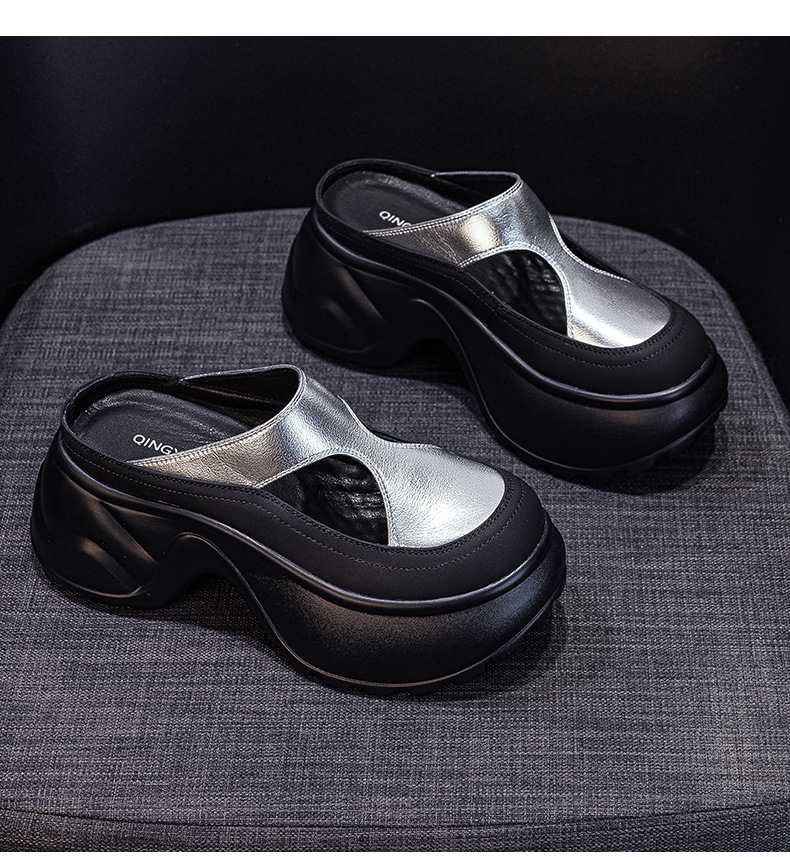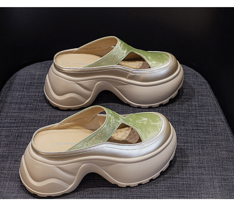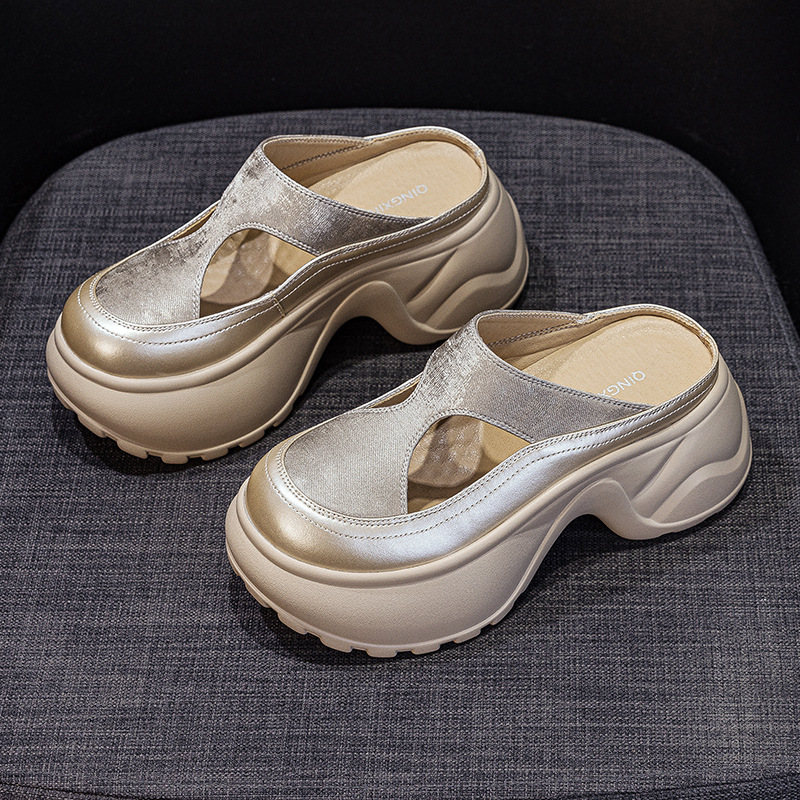 여성을위한 작은 두꺼운 밑창 발가락 슬리퍼 2025 새로운 슬립 온 게으른 외부 착용 캐주얼 패션 다목적 샌들스토어 가기