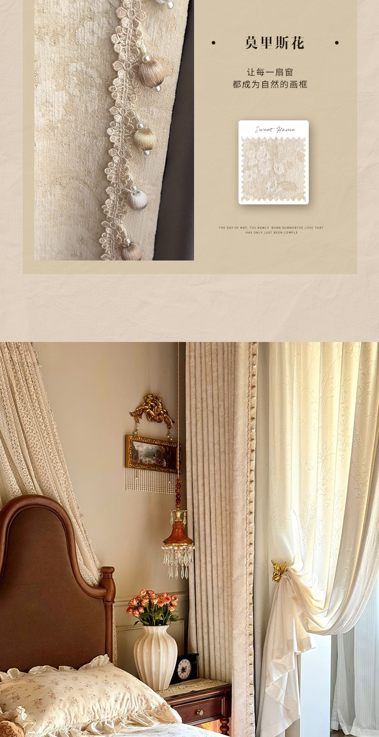 2025 새로운 모리스 꽃 프랑스 복고풍 셔닐 거실 침실 하이 엔드 커튼 블랙 아웃 천 사용자 정의스토어 가기
