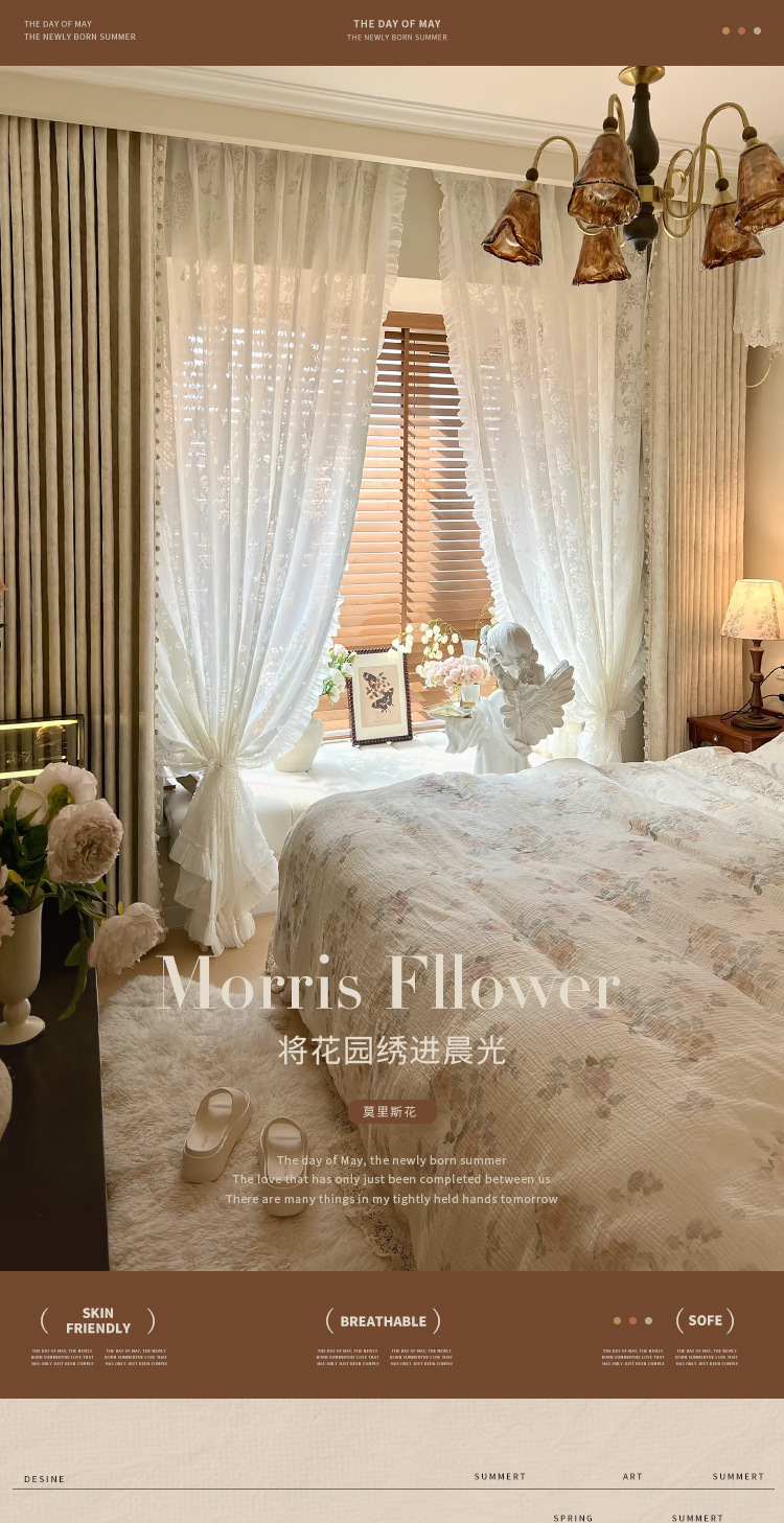 2025 새로운 모리스 꽃 프랑스 복고풍 셔닐 거실 침실 하이 엔드 커튼 블랙 아웃 천 사용자 정의