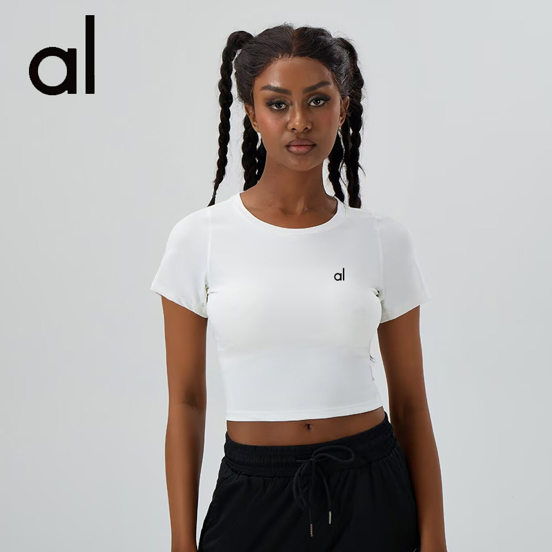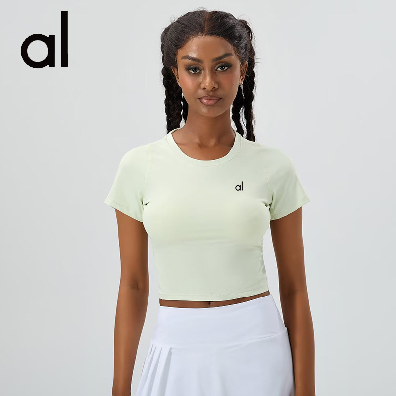 여성용 크로스보더 요가복, 필라테스 피트니스 트레이닝 반팔 크롭 타이트 티셔츠, 속건성 런닝 스포츠탑, 여름