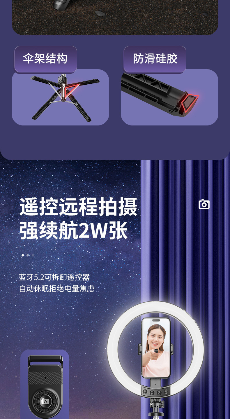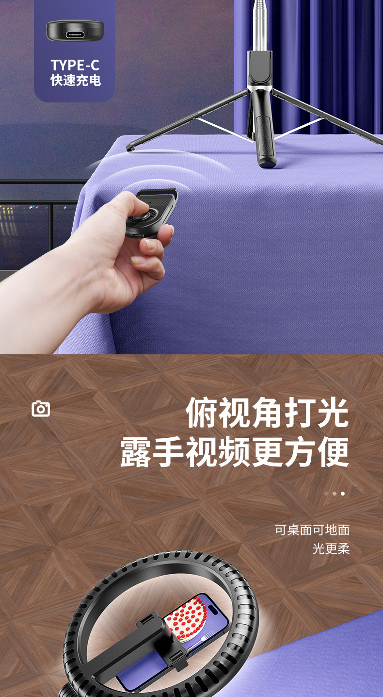 신제품 P220Q 라이브 필 라이트 셀카 스틱 라운드 필 라이트 슈퍼 긴 조절 가능한 휴대 전화 홀더 셀카 스틱