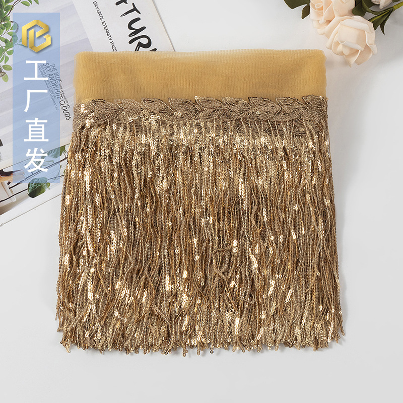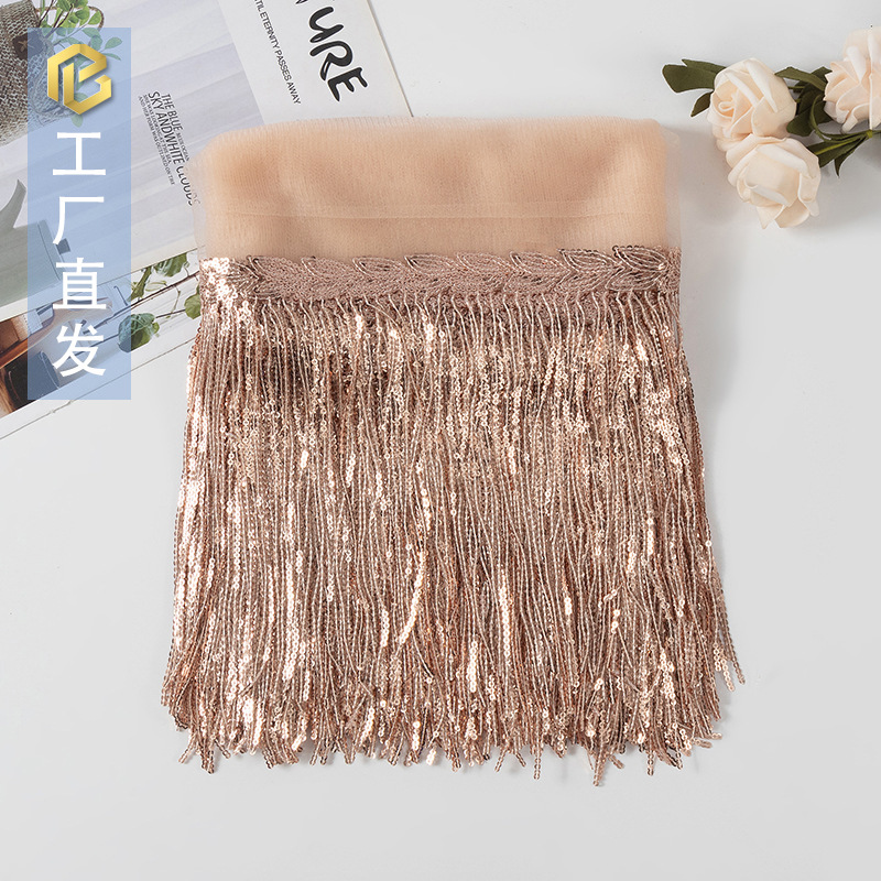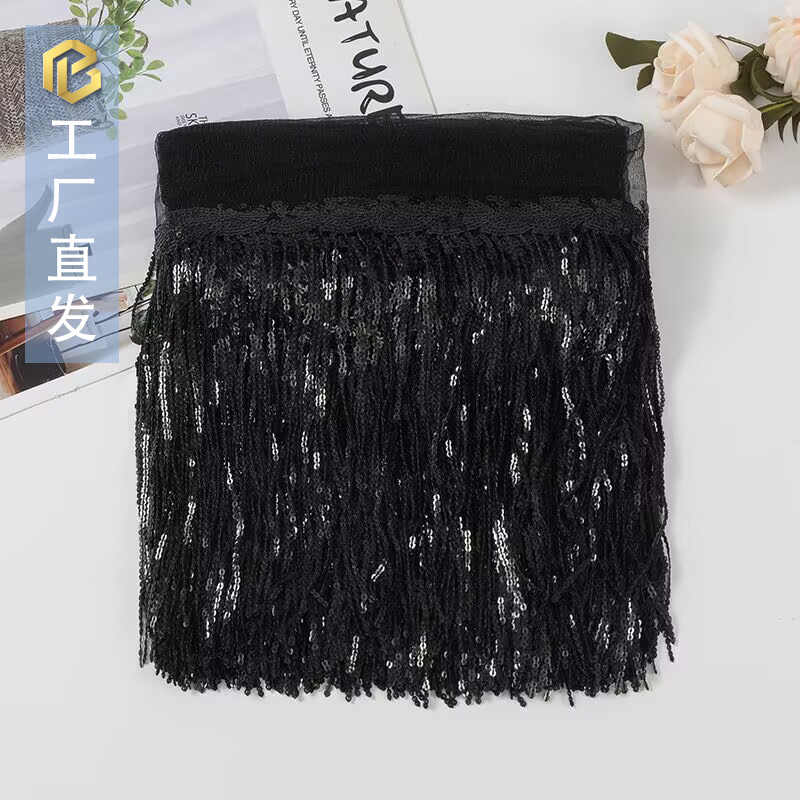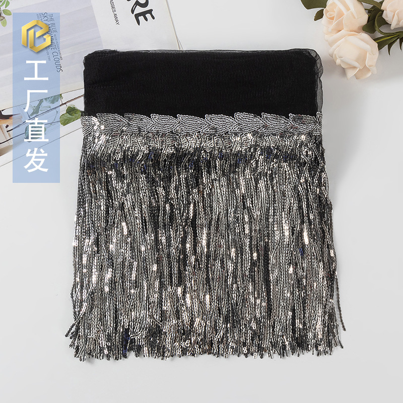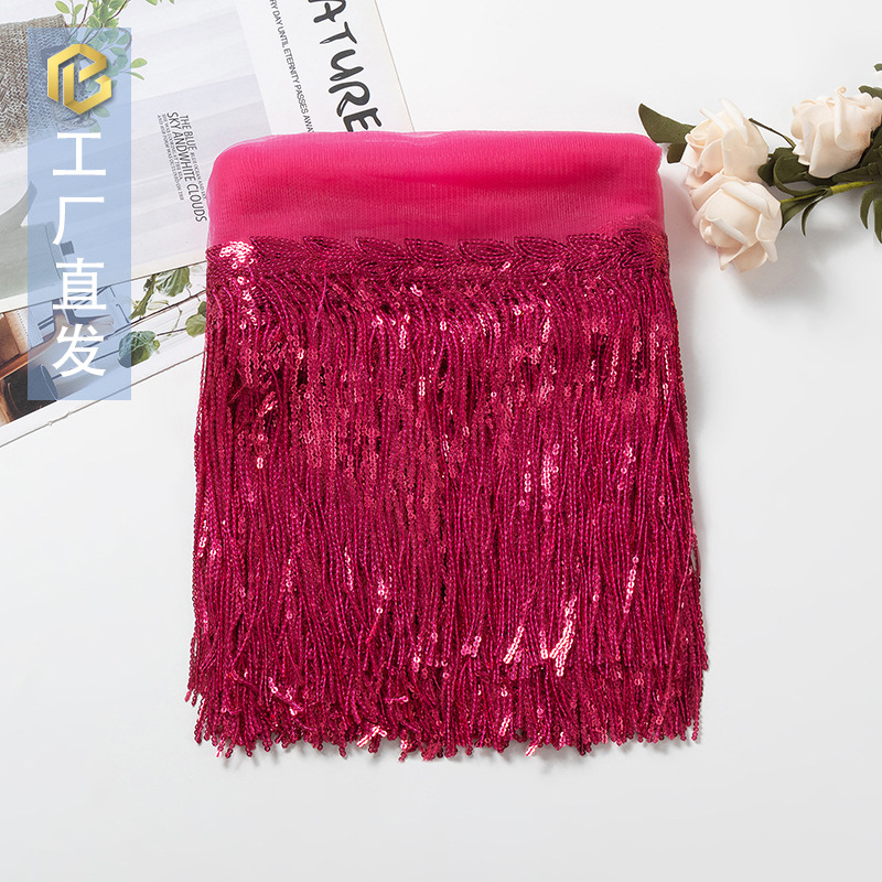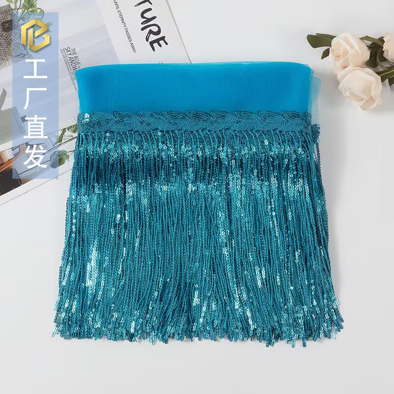 스팟 배치 멀티 컬러 레이저 스팽글 태슬 레이스 25cm 무대 공연 DIY 댄스 의상 크로스 보더 의류 액세서리