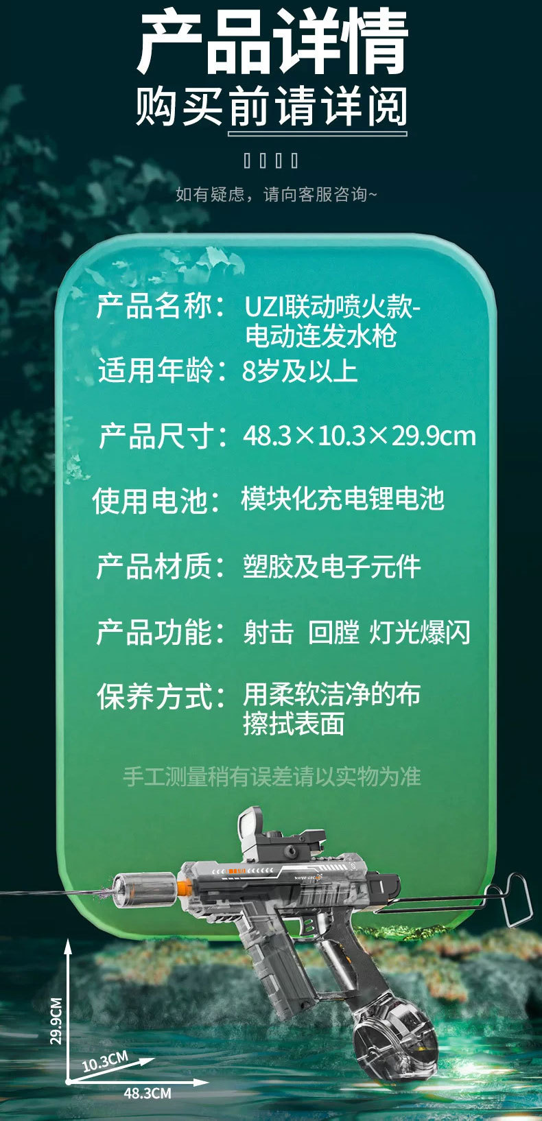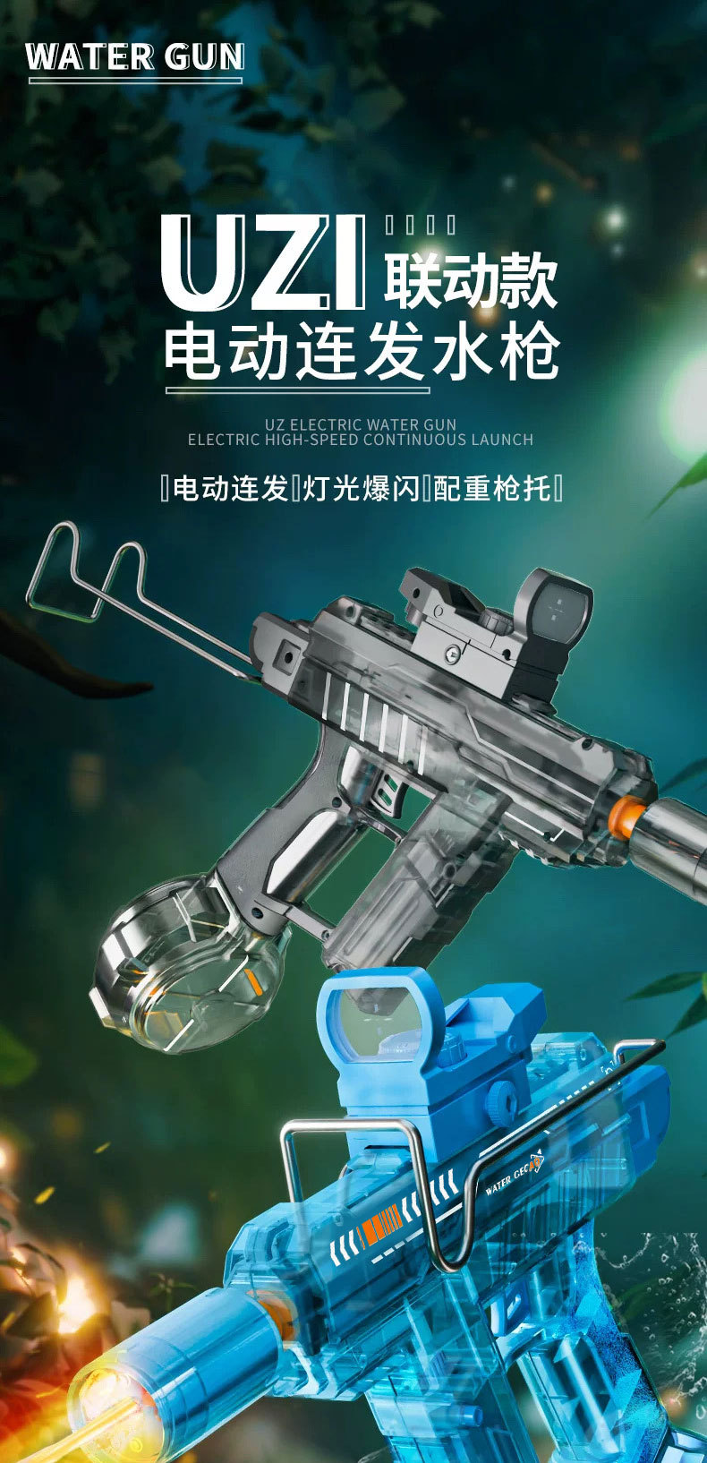 아마존 전기 UZI 불꽃 빛 물총 장난감 소년 대용량 강력한 물총 국경 간 도매스토어 가기