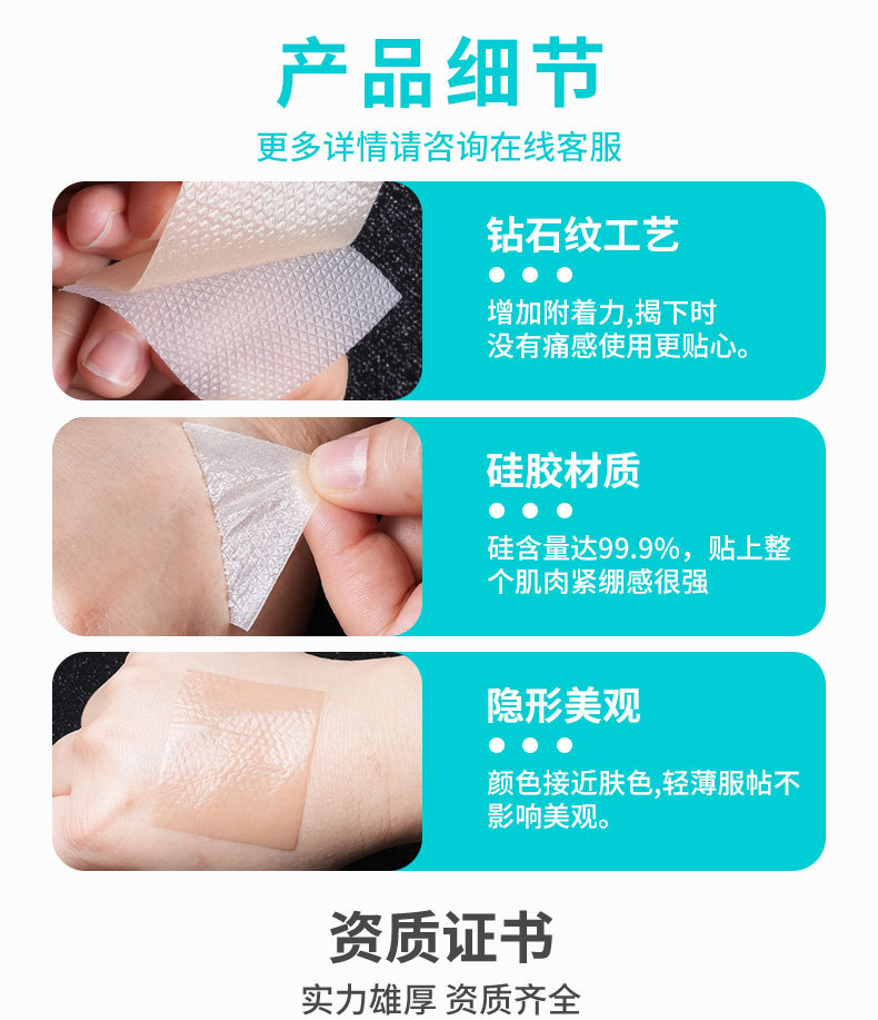 국경을 넘는 동일한 실리콘 흉터 관리 패치, 두꺼운 실리콘 패치, 흉터 생장 관리, 피부 미용 및 흉터 보호 실리콘 패치
