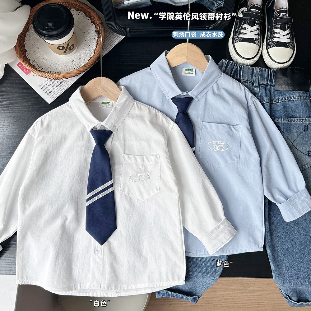 2025 새로운 가을 아동 의류 큰 어린이 JK 대학 스타일 유행 소년 넥타이 클래스 유니폼 유치원 셔츠 도매