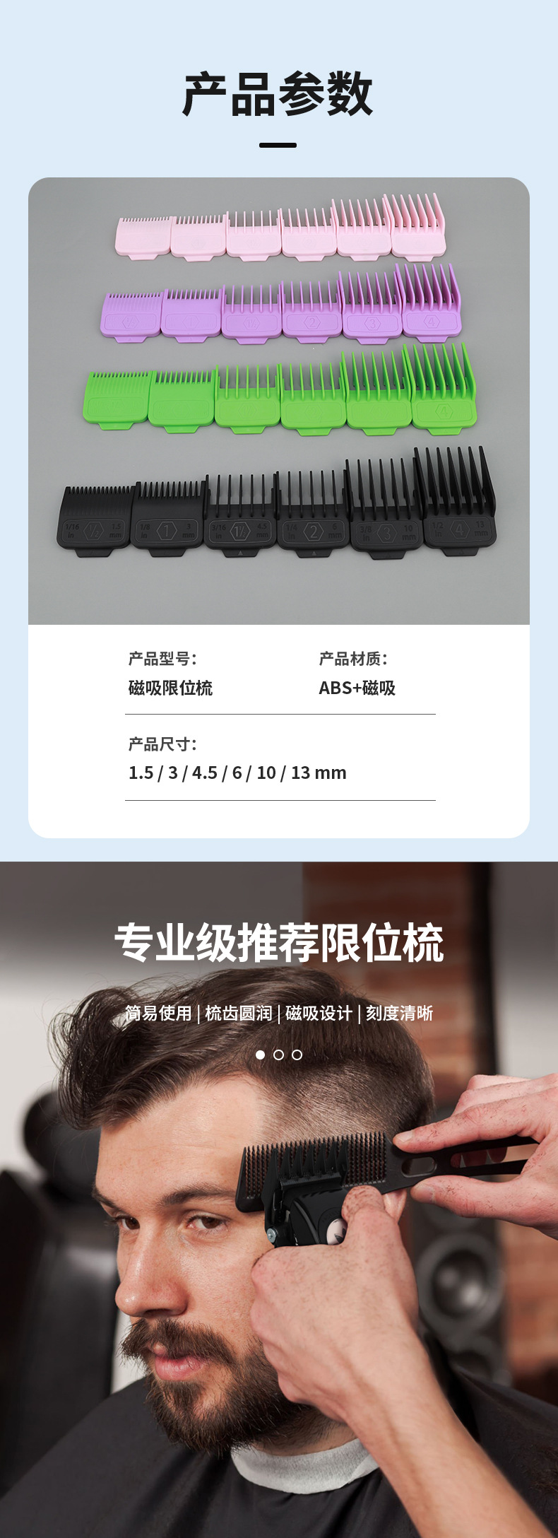 6件套磁吸限位梳尺寸:1.5 mm,3mm,4.5mm,6mm,10mm,13mm