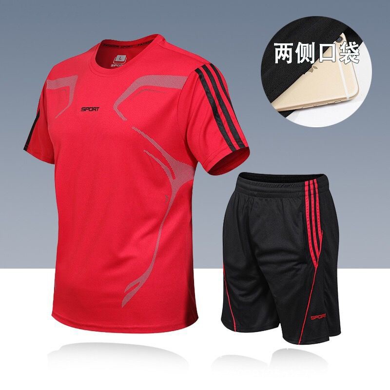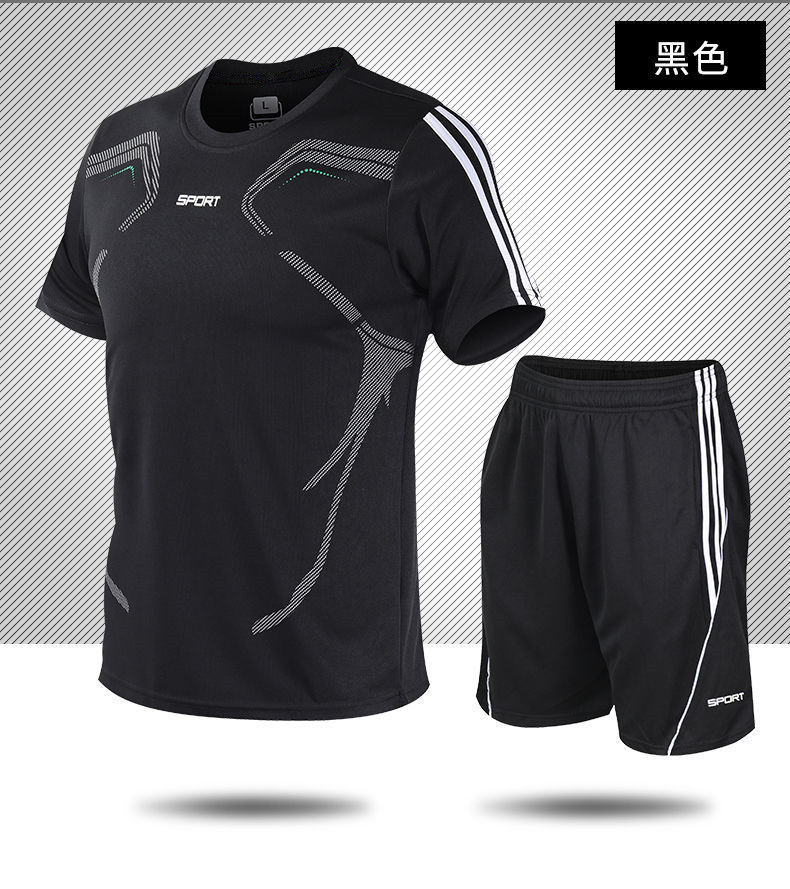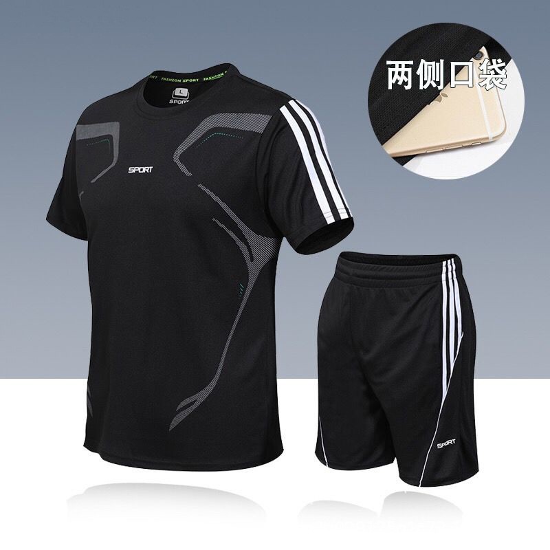 2025 스포츠 정장 남성용 반팔 여름 캐주얼 반바지 속건성 투피스 피트니스 여름 속건성 캐주얼 슈트스토어 가기