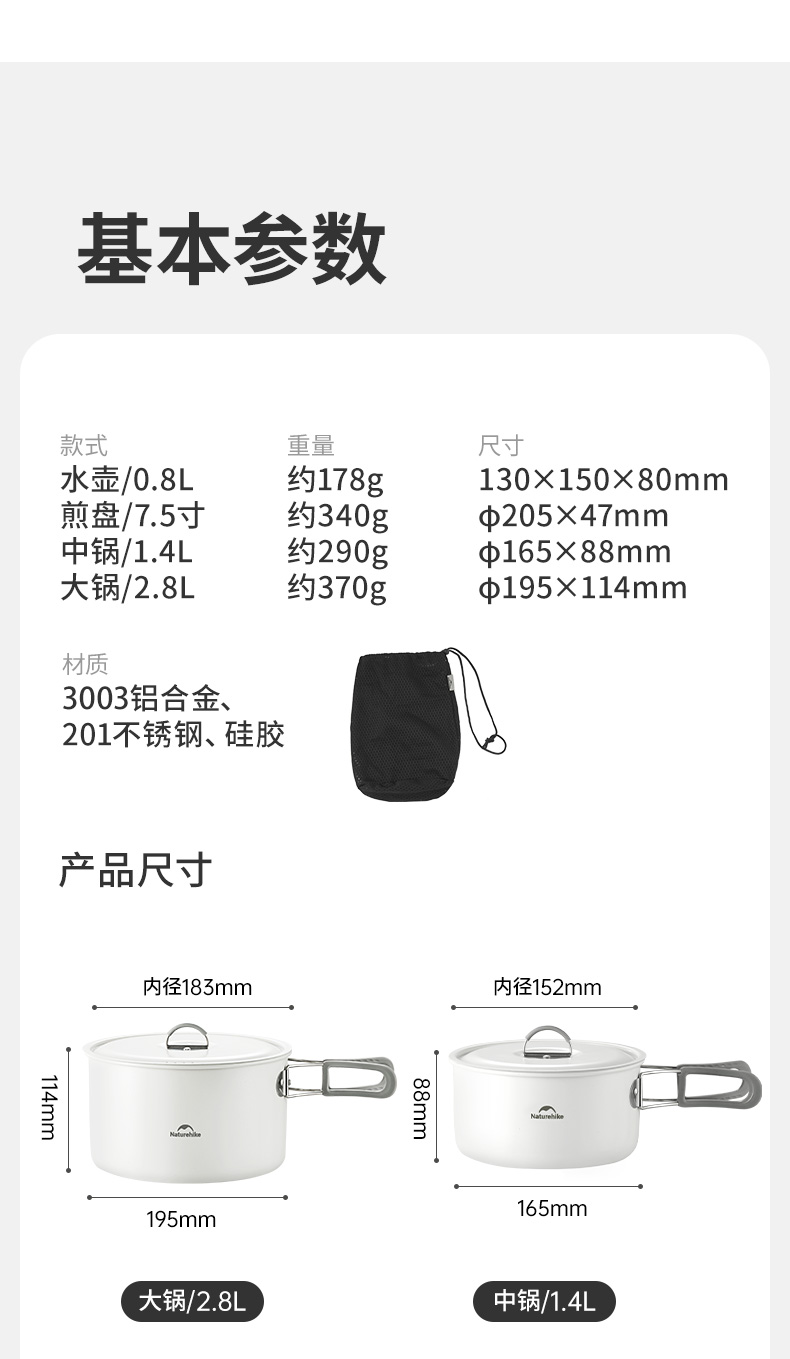 • [4~7인용 냄비 세트] 0.8L 주전자 + 프라이팬 7.5inch개 + 1.4L 중형 냄비 + 2.8L 대형 냄비?