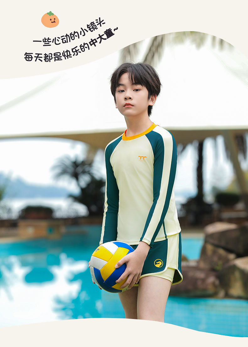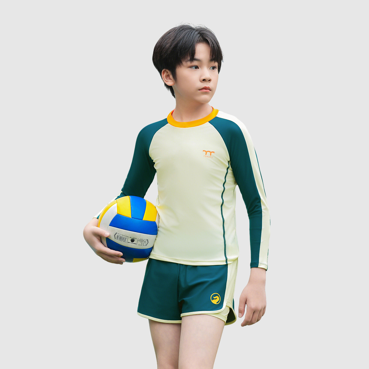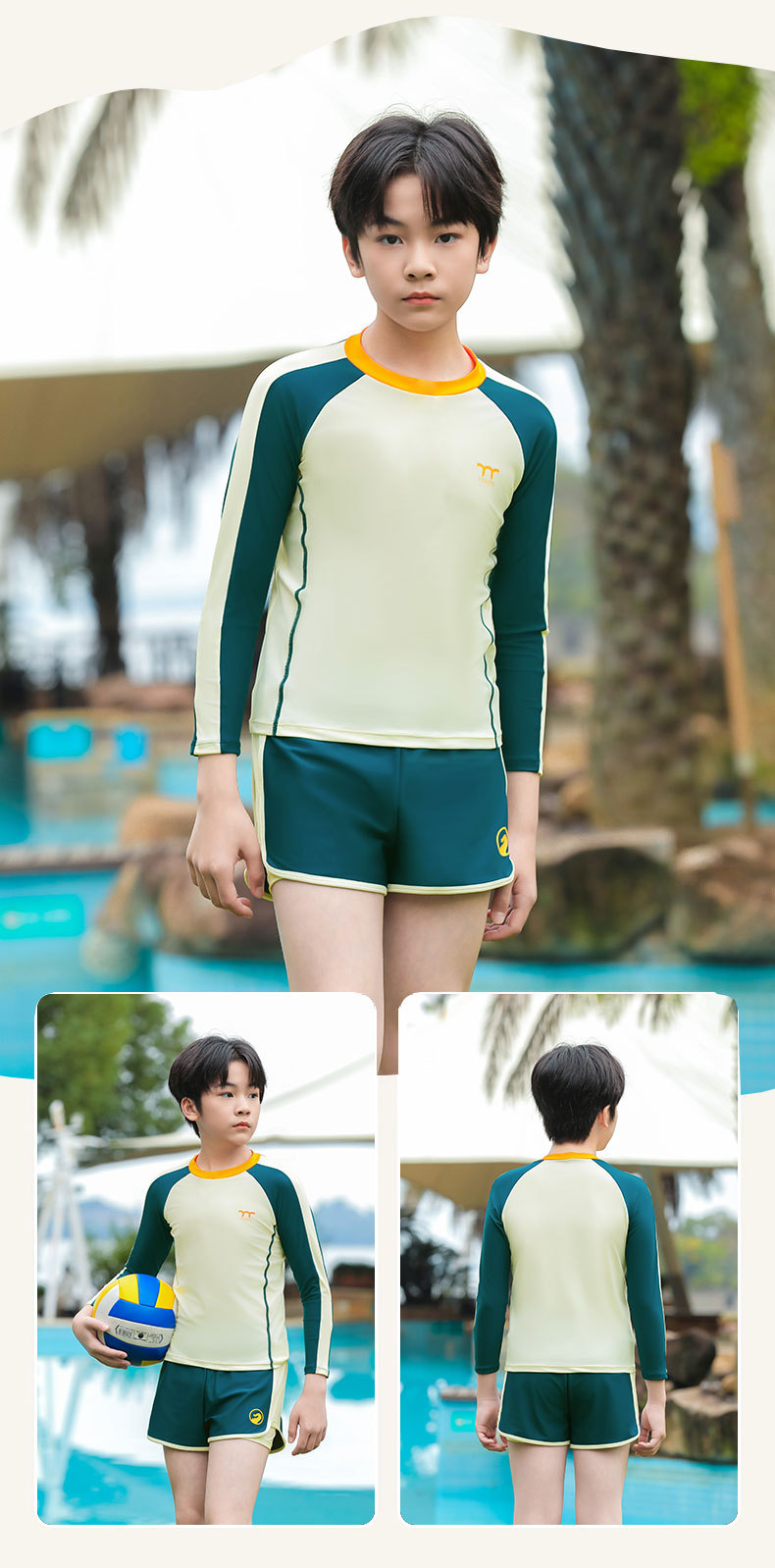 어린이 수영복 소년 긴팔 자외선 차단 중학생 더블 레이어 반바지 당황 방지 워터 파크 해변 휴가 수영복