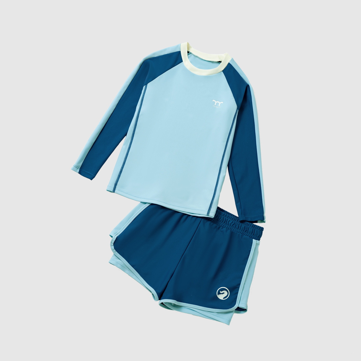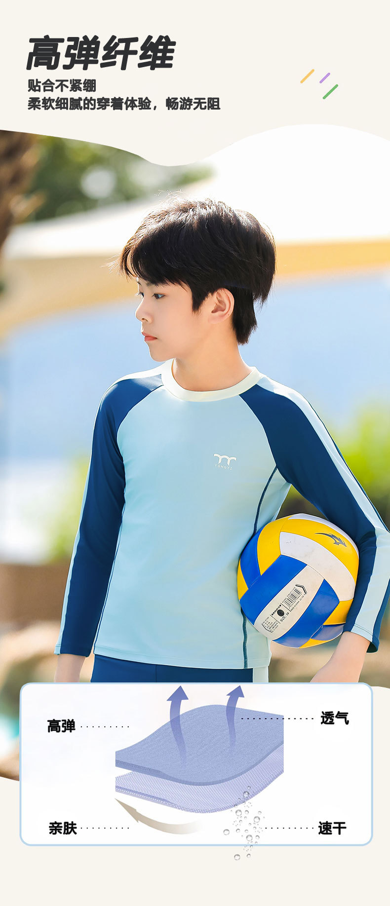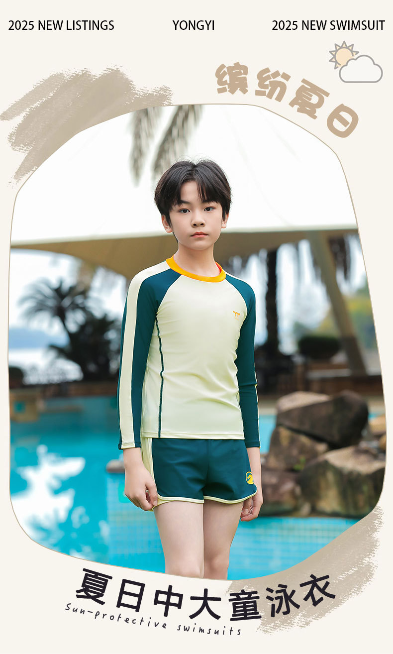 어린이 수영복 소년 긴팔 자외선 차단 중학생 더블 레이어 반바지 당황 방지 워터 파크 해변 휴가 수영복