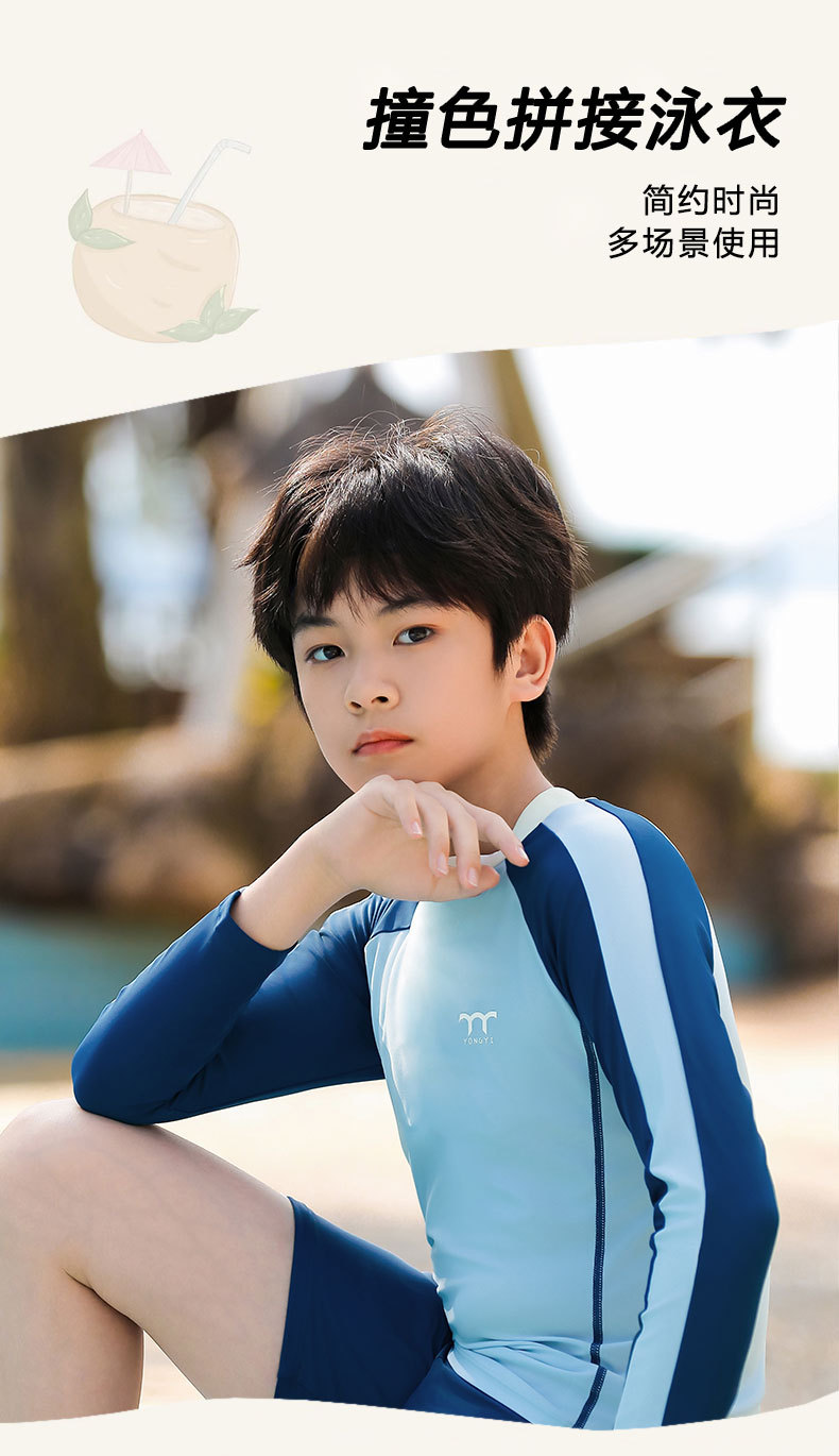 어린이 수영복 소년 긴팔 자외선 차단 중학생 더블 레이어 반바지 당황 방지 워터 파크 해변 휴가 수영복스토어 가기