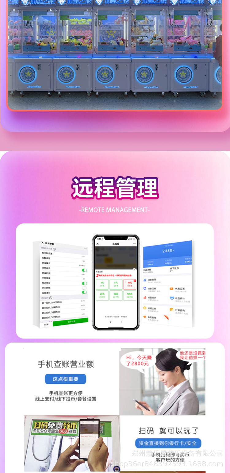 새로운 완전 투명 스캔 코드 인형 뽑기 기계, 가위 기계, 상업용 어린이 4인 미니 부티크 인형 뽑기 기계, 동전으로 작동