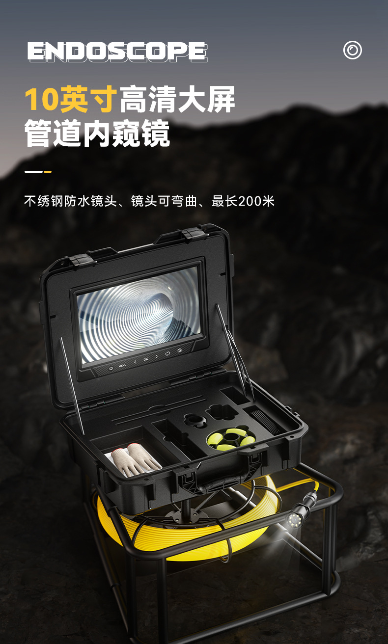 새로운 도착 10inch 스크린 파이프 내시경 전자 비디오 산업용 내시경 IP68 방수 카메라 공장 직접스토어 가기