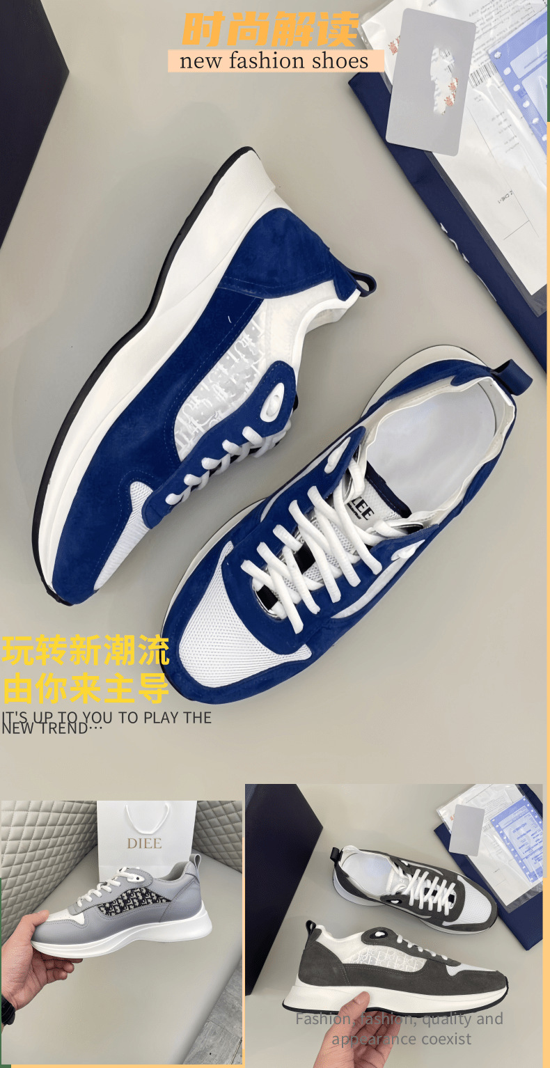 크로스보더 레터 B25 로우탑 스니커즈 노안 자수 캐주얼 남성화 두꺼운 밑창 레이스업 패션 여행화