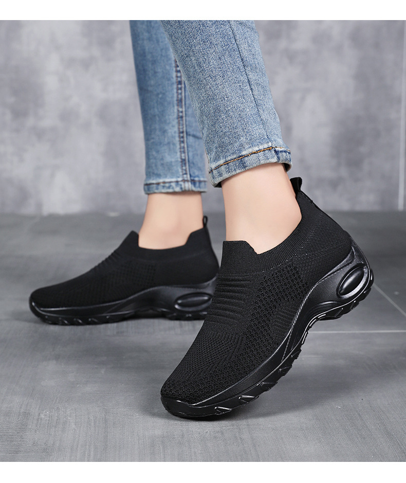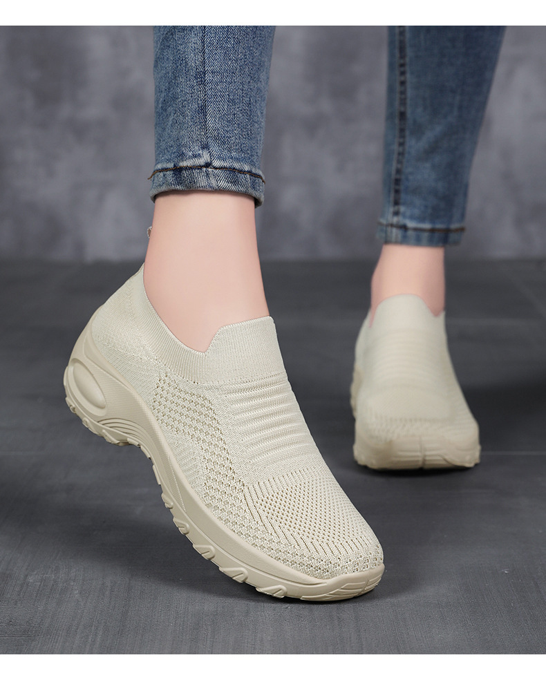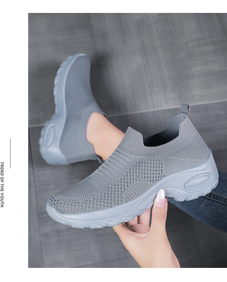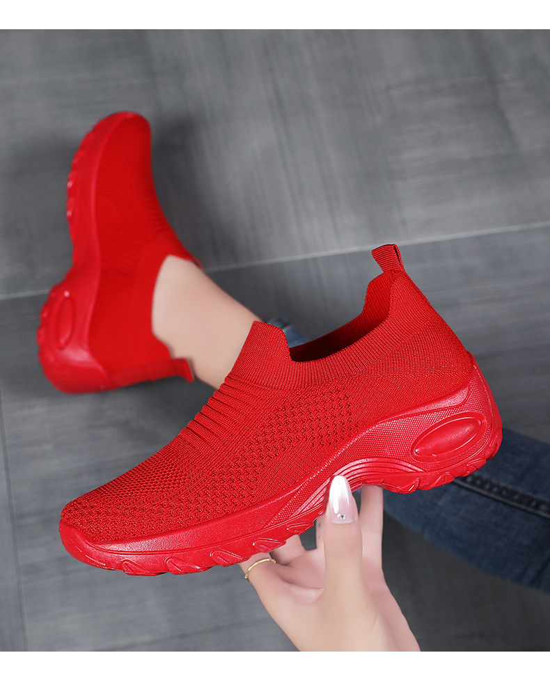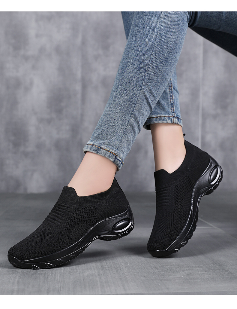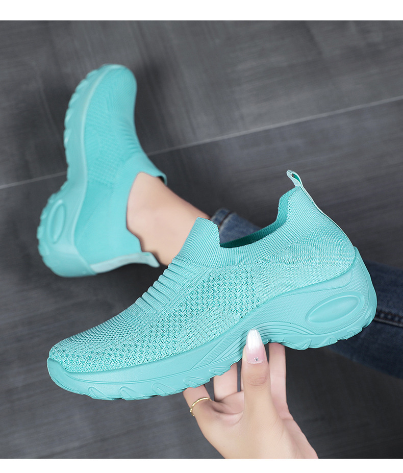 신발 여성 캐주얼 신발 새로운 국경 간 두꺼운 밑창 여성 신발 단색 다목적 신장 증가 신발 플라이 짠 통기성 메쉬 신발 도매스토어 가기