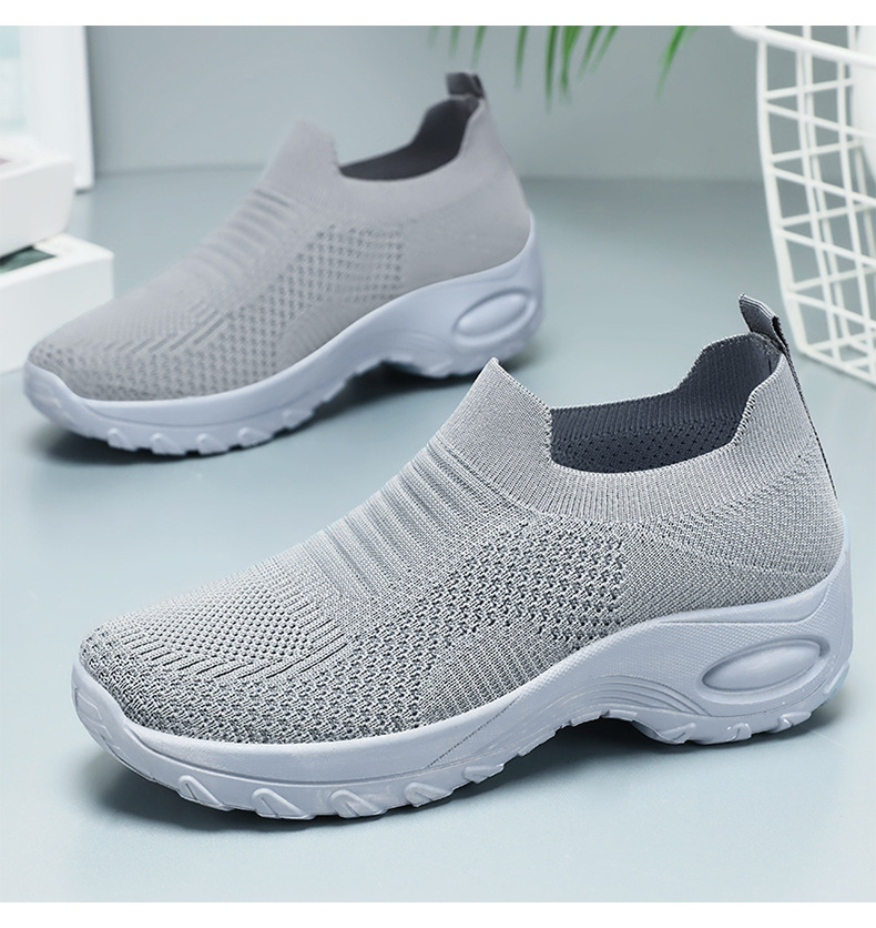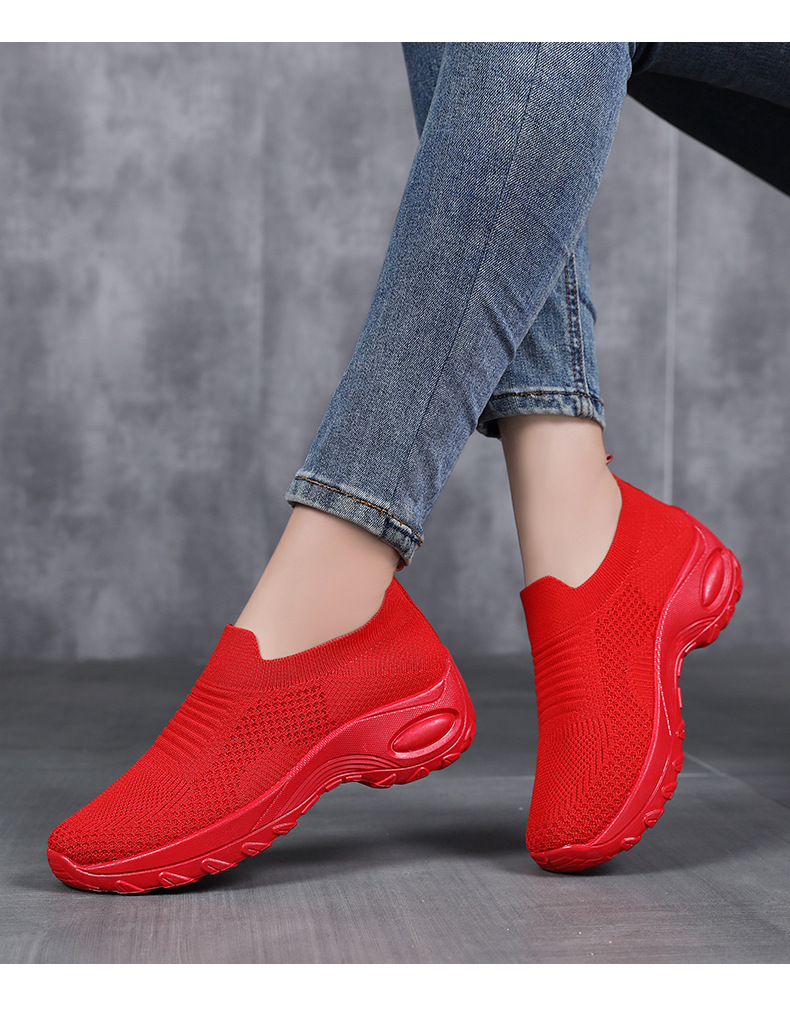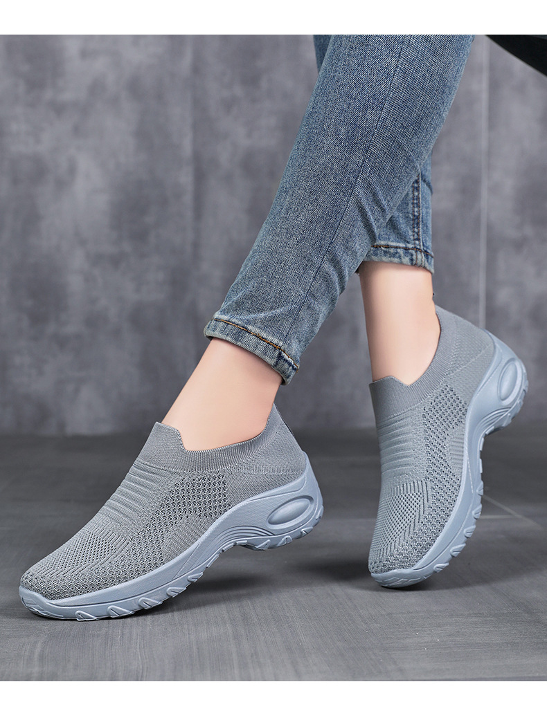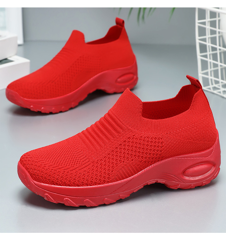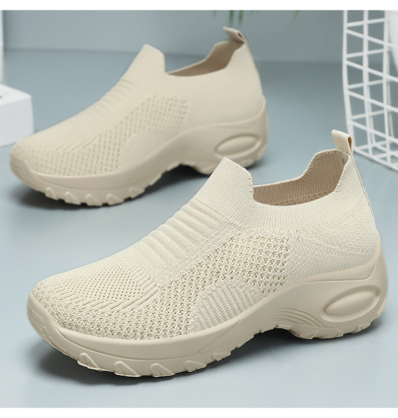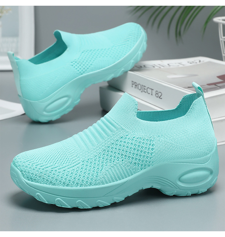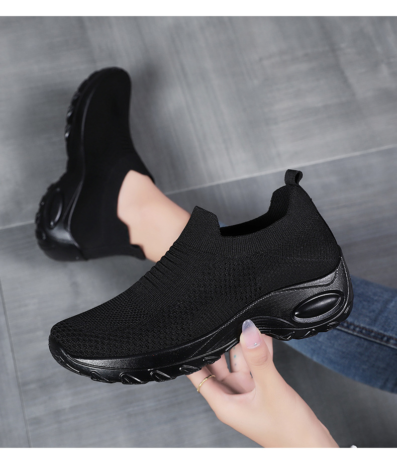 신발 여성 캐주얼 신발 새로운 국경 간 두꺼운 밑창 여성 신발 단색 다목적 신장 증가 신발 플라이 짠 통기성 메쉬 신발 도매스토어 가기