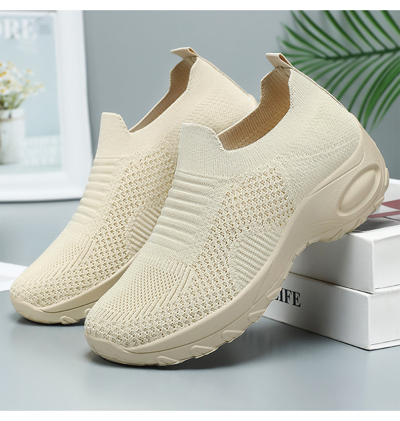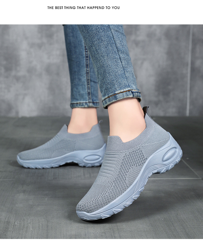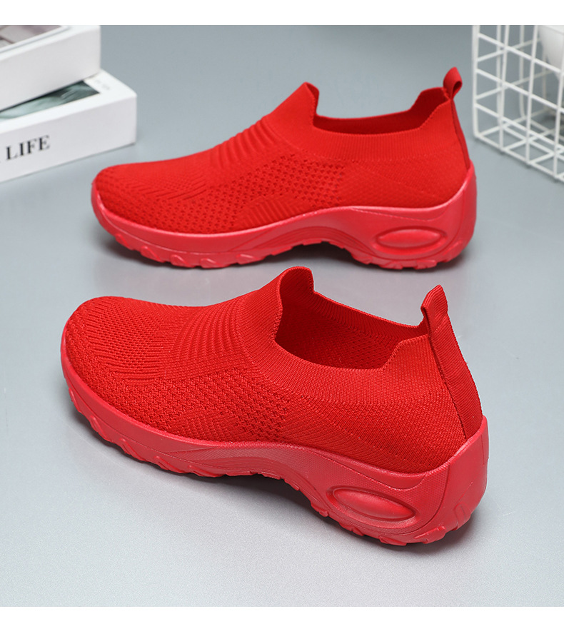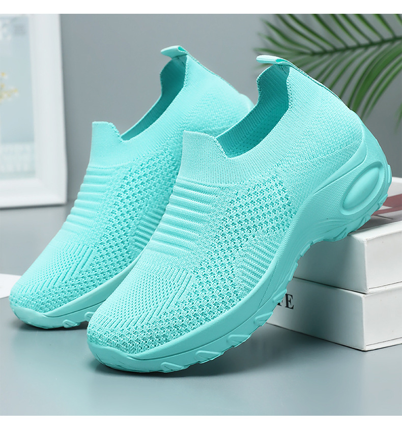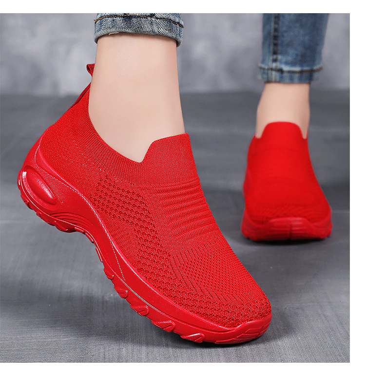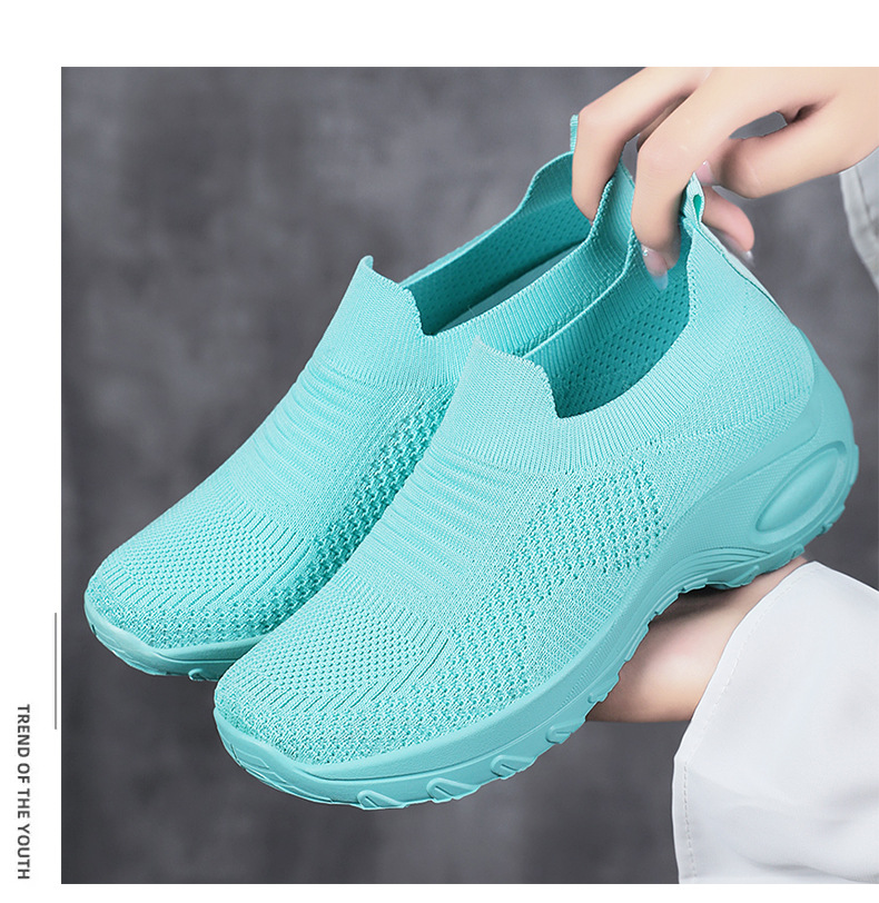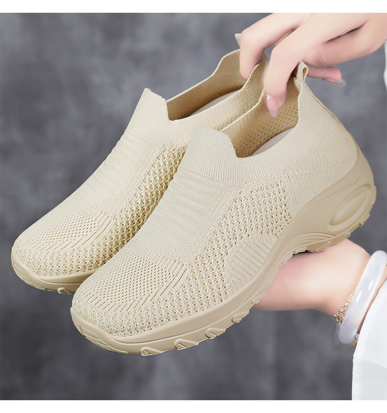 신발 여성 캐주얼 신발 새로운 국경 간 두꺼운 밑창 여성 신발 단색 다목적 신장 증가 신발 플라이 짠 통기성 메쉬 신발 도매스토어 가기