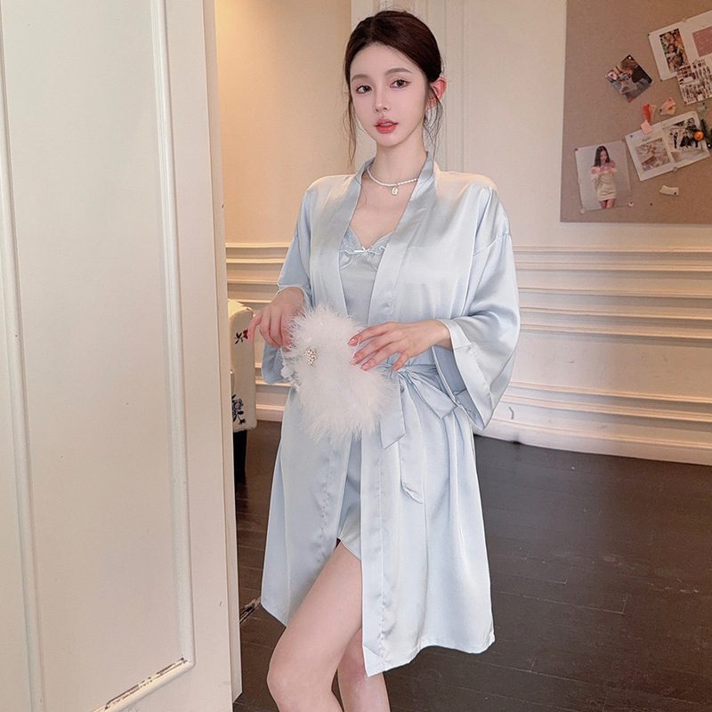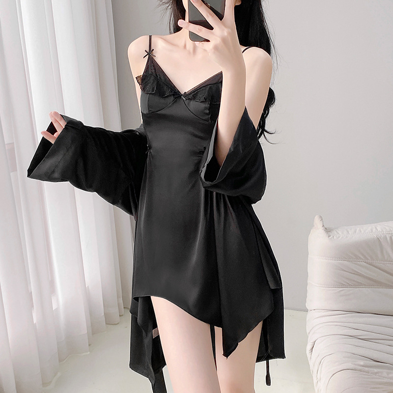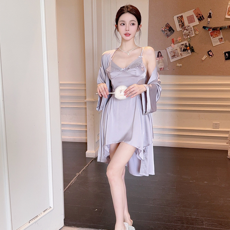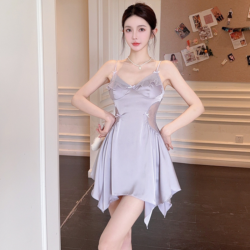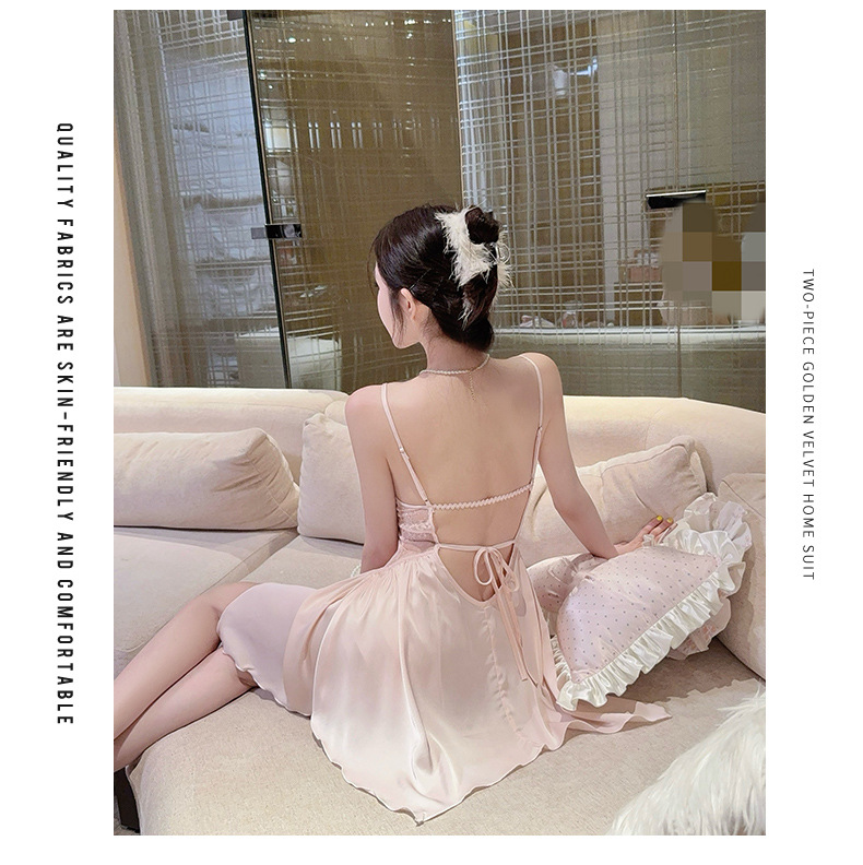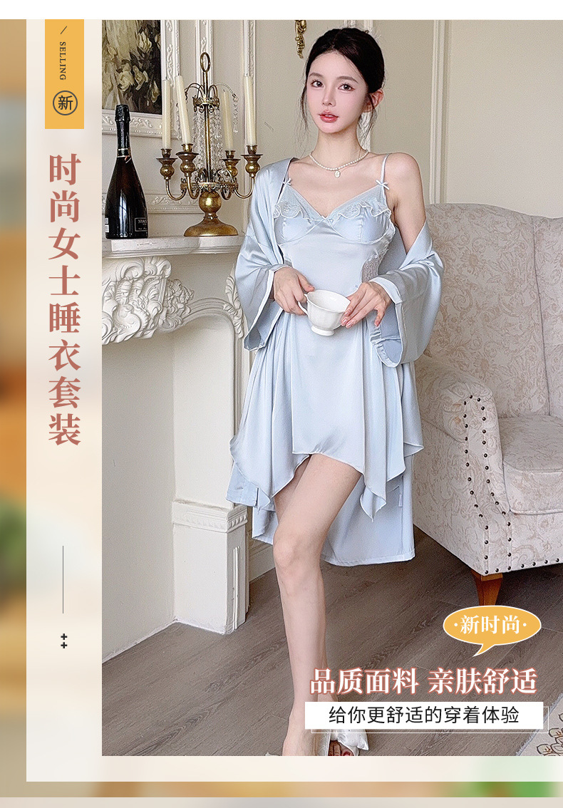 실크 벨벳 여성용 잠옷 2026 신상 여름 시원한 아이스 실크 잠옷 세트 섹시한 레이스 잠옷 고급스러운 느낌스토어 가기