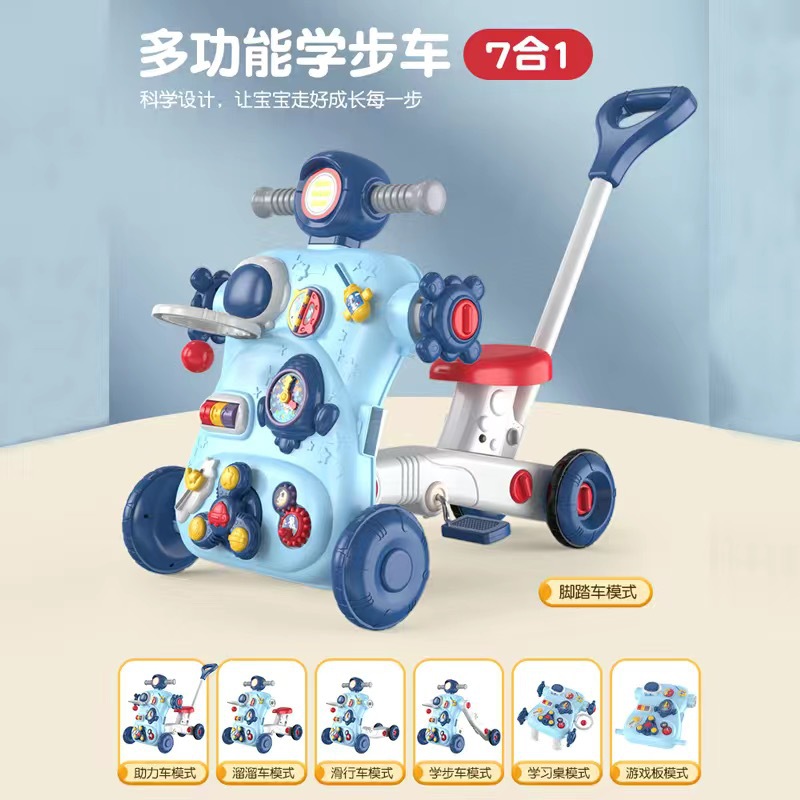 • 업그레이드 버전 블루 [7-in-1 다기능] (스쿠터 + 보행기 + 학습 테이블 + 게임 보드 + 스쿠터 + 부스터 + 자전거)