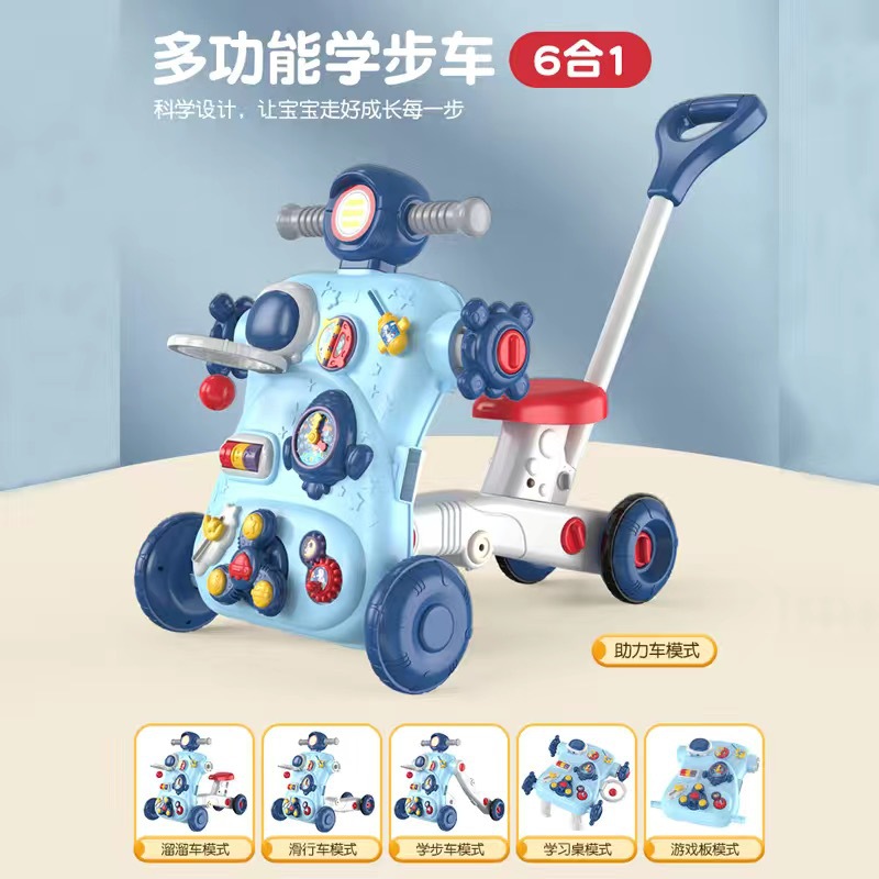 • 업그레이드 버전 블루 [6-in-1 다기능] (스쿠터 + 보행기 + 학습 테이블 + 게임 보드 + 스쿠터 + 부스터)