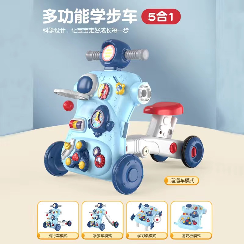 • 업그레이드 버전 블루 [5-in-1 다기능] (스쿠터 + 보행기 + 학습 테이블 + 게임 보드 + 스쿠터)
