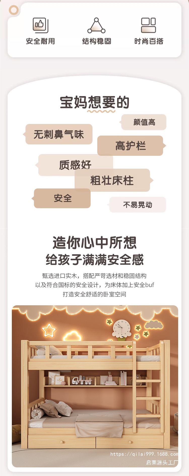 • 두껍고 대담한 직선 사다리형 이층침대