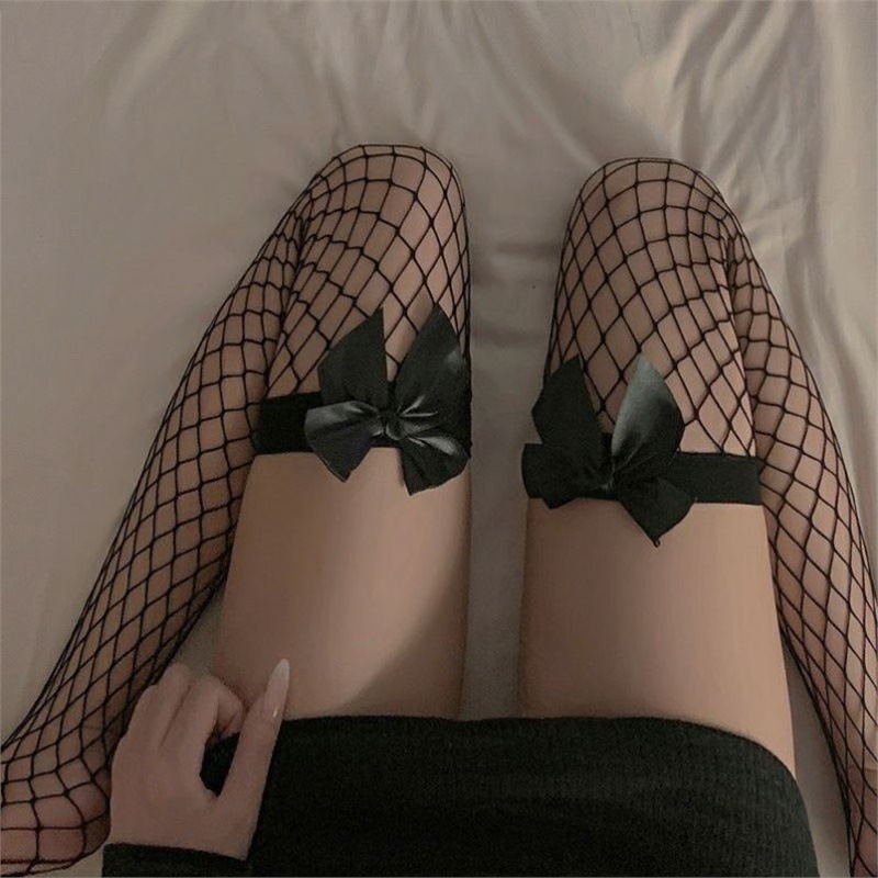 • 활 망사 스타킹 블랙