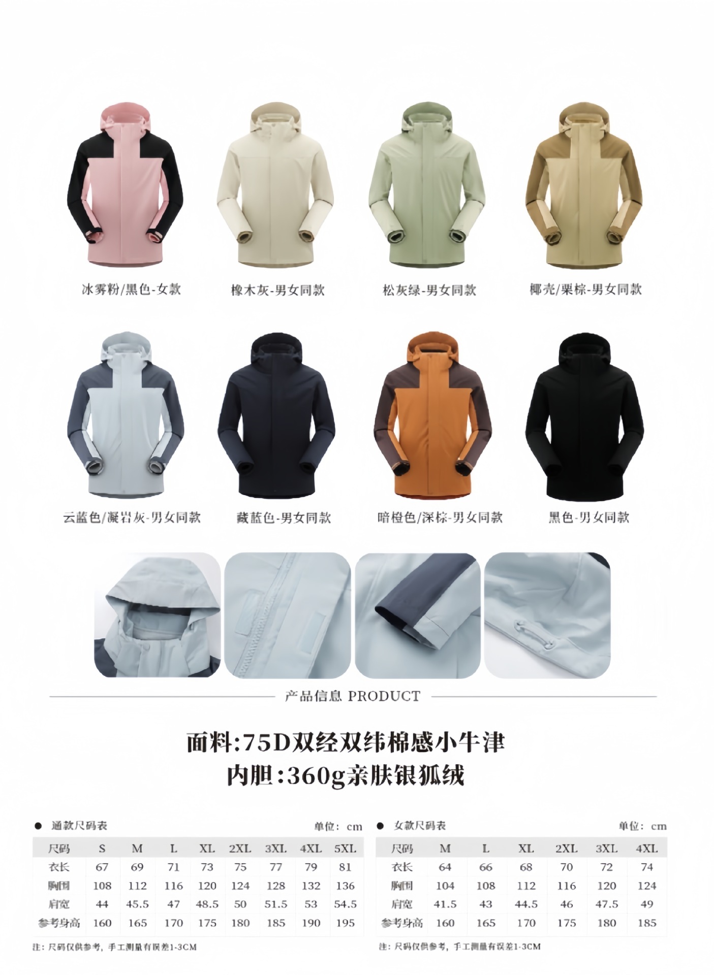 새로운 스타일의 재킷 야외 방풍 방수 따뜻한 등산 재킷 재킷 3-in-One