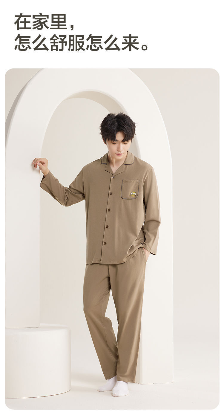 Hongdou 홈 봄, 가을 커플 스타일 면 잠옷은 순면 캐주얼 홈웨어 세트 외부에 착용 가능스토어 가기