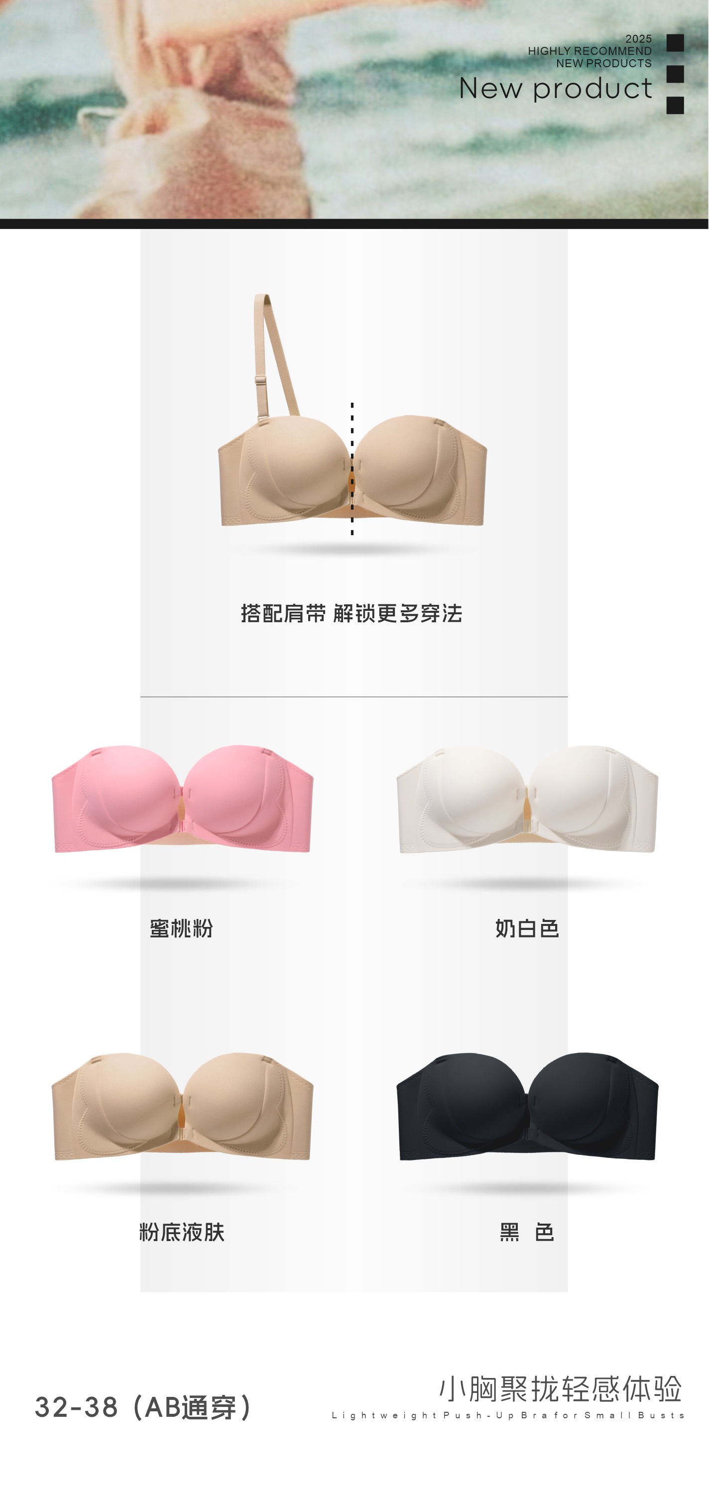 작은 가슴, 중간 두께, 푸시 업, 미끄럼 방지, 끈이 없는 아름다운 등, 통기성 고정 컵을 가진 여성을 위한 오리지널 2549 리퀴드 파운데이션 심리스 속옷스토어 가기