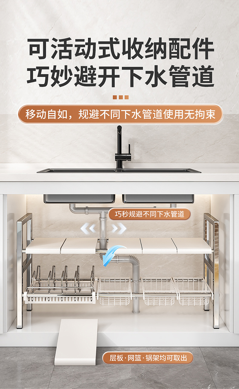 주방 보관함 다기능 스테인레스 스틸 흰색 카운터 싱크대 아래 싱크대 다층 조절 가능한 보관함스토어 가기