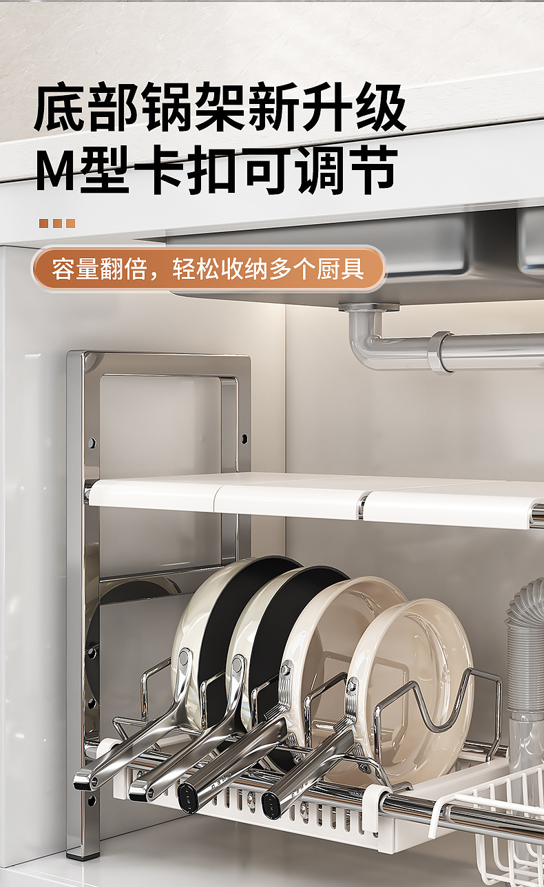 주방 보관함 다기능 스테인레스 스틸 흰색 카운터 싱크대 아래 싱크대 다층 조절 가능한 보관함