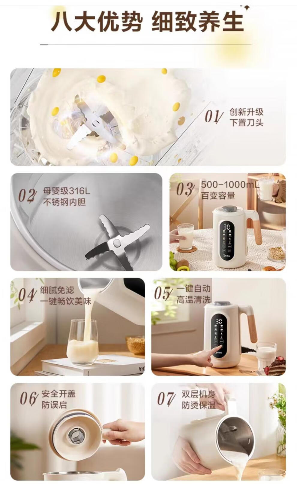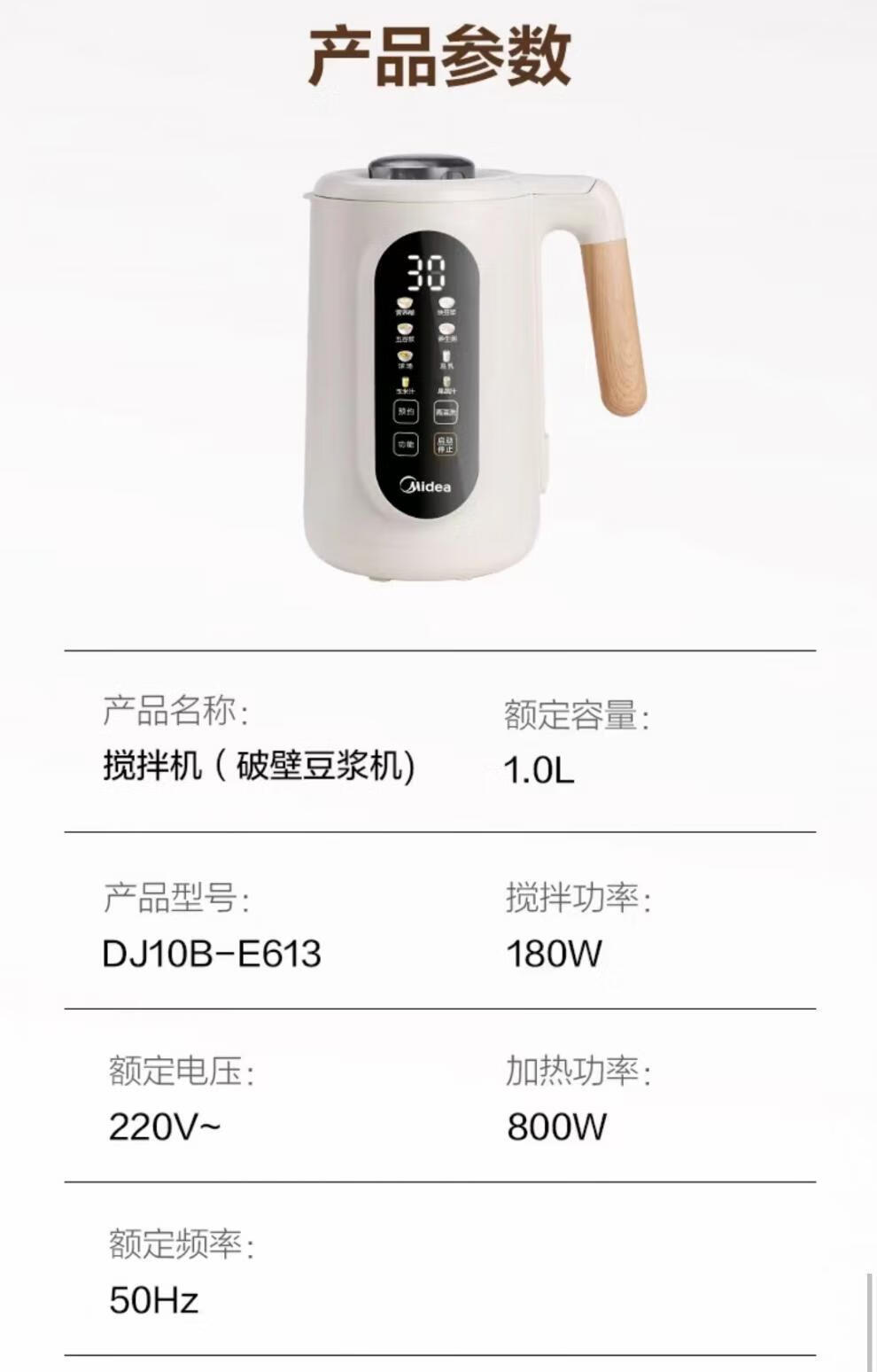 Midea DJ10B-E613 두유 기계 가정용 필터 프리 1L 대용량 다기능 노워시 주스 요리스토어 가기