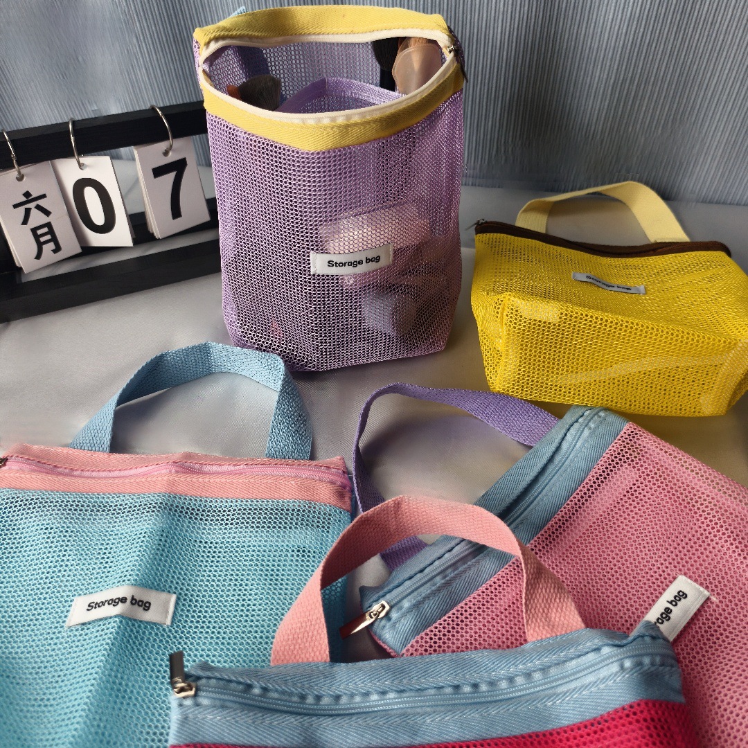 Ins 휴대용 세면 용품 가방 다기능 저장 가방 휴대용 욕실 배수 피트니스 수영 여행 메쉬 비치 가방