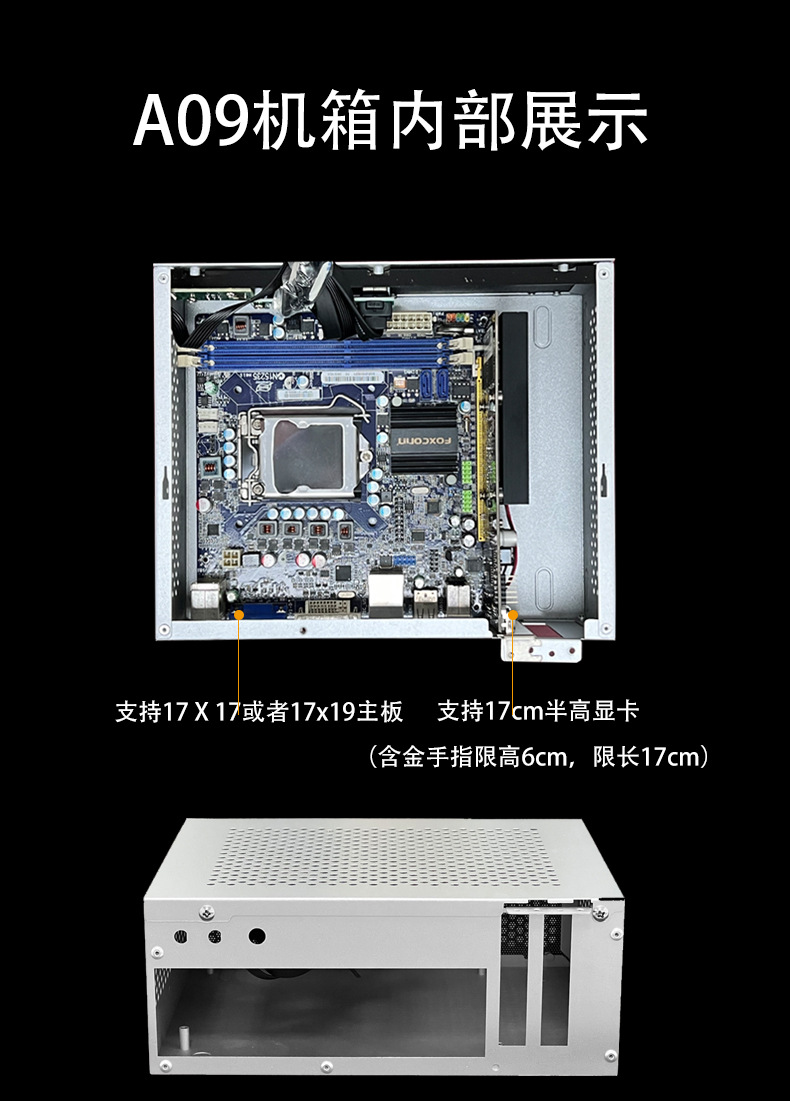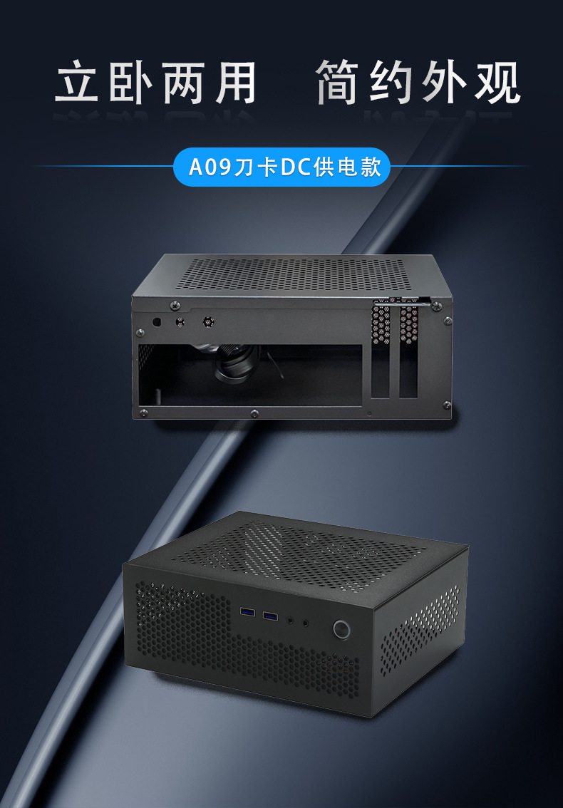 SKTC A09 검정색 지원 하프 높이 그래픽 카드 ITX 마더보드 DC 어댑터 전원 공급 장치 전체 철 데스크탑 컴퓨터 케이스스토어 가기