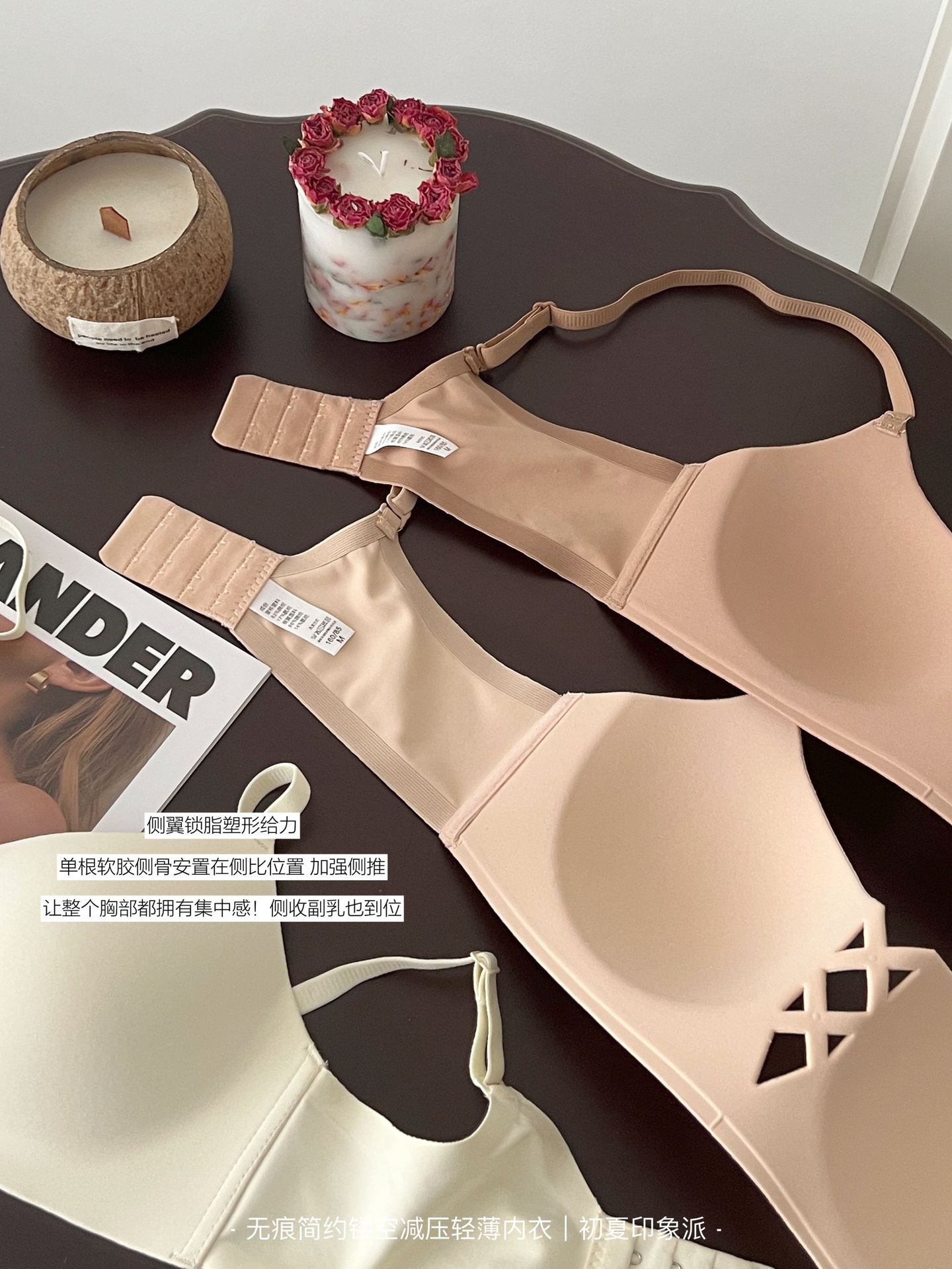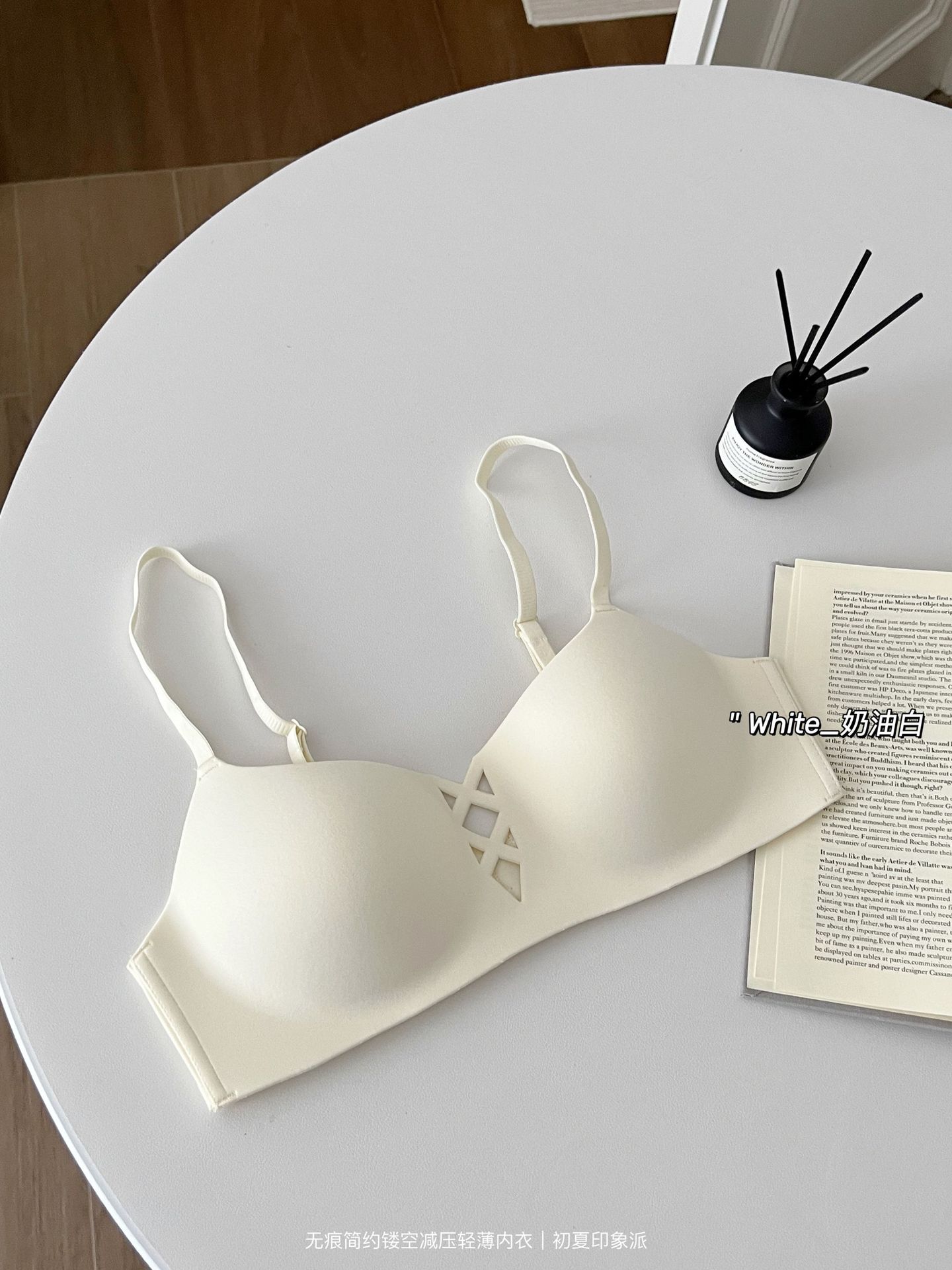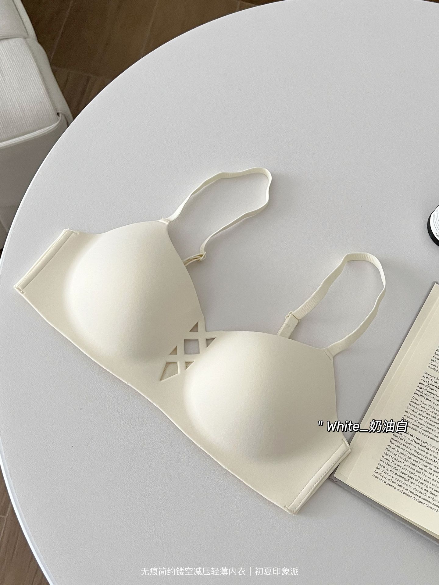 대외 무역 국경 간 인기 스타일 원활한 간단한 크로스 중공 얇고 통기성이 뛰어난 여성용 속옷 광택 작은 가슴 푸시 업 브라스토어 가기