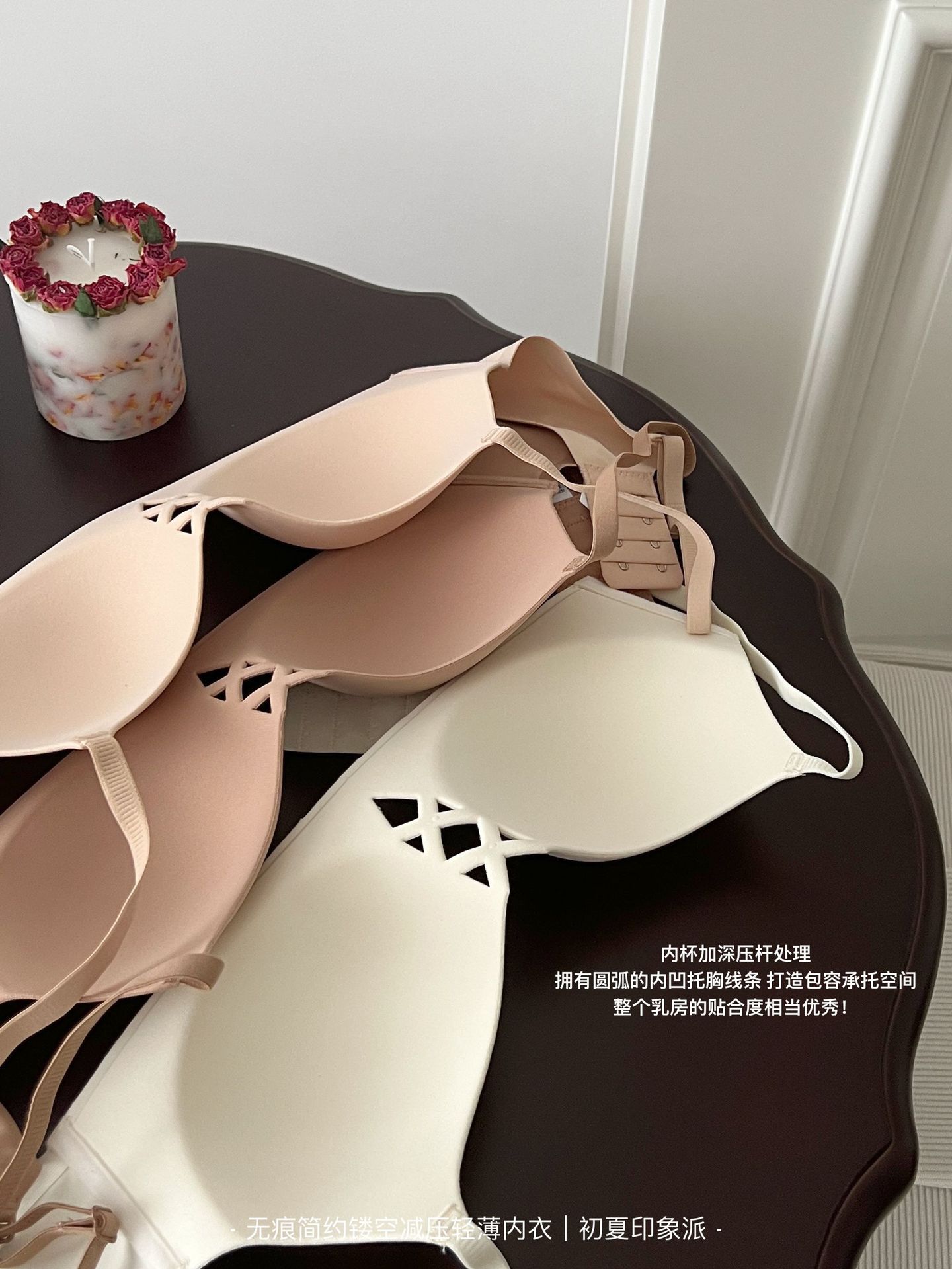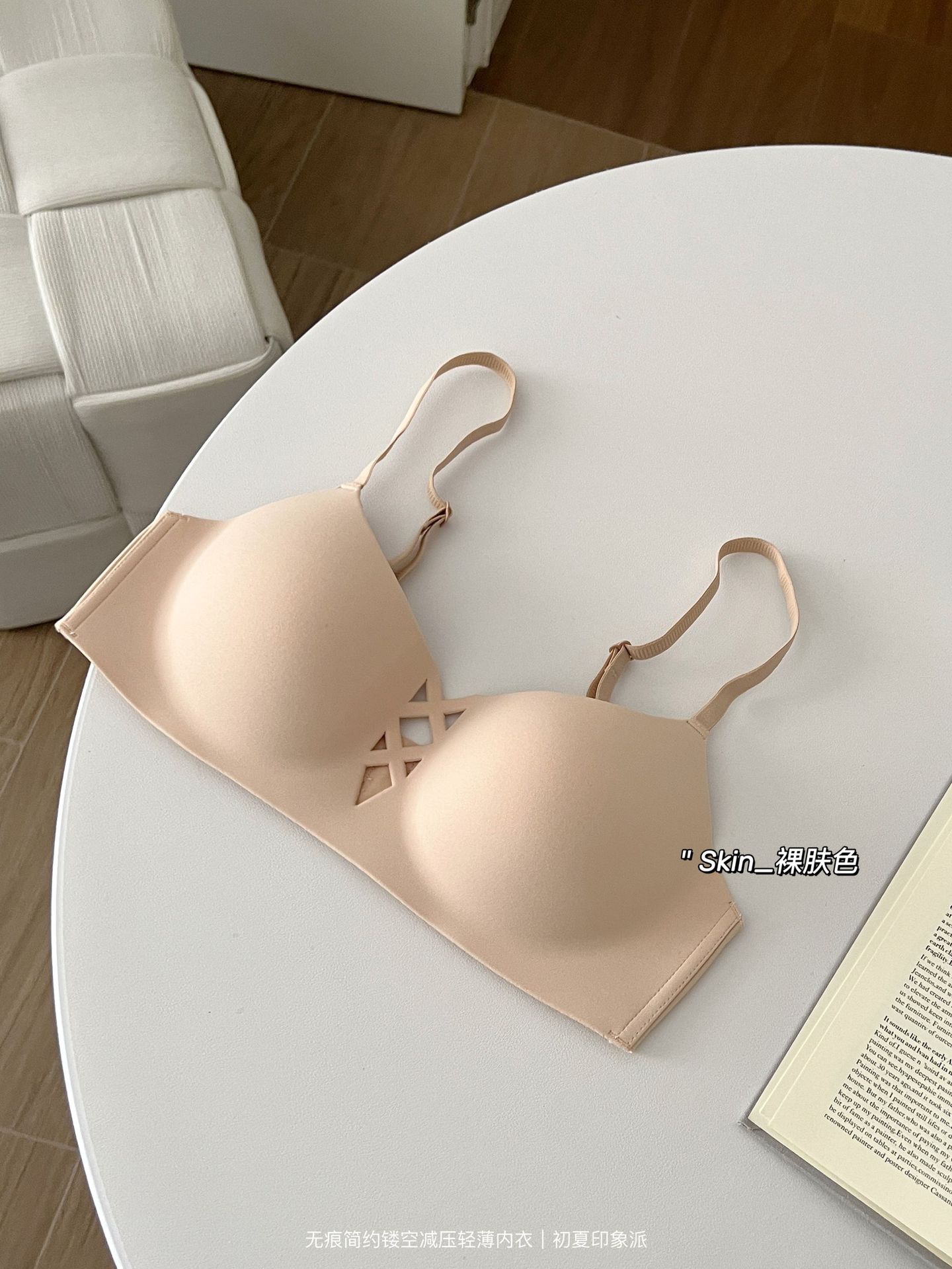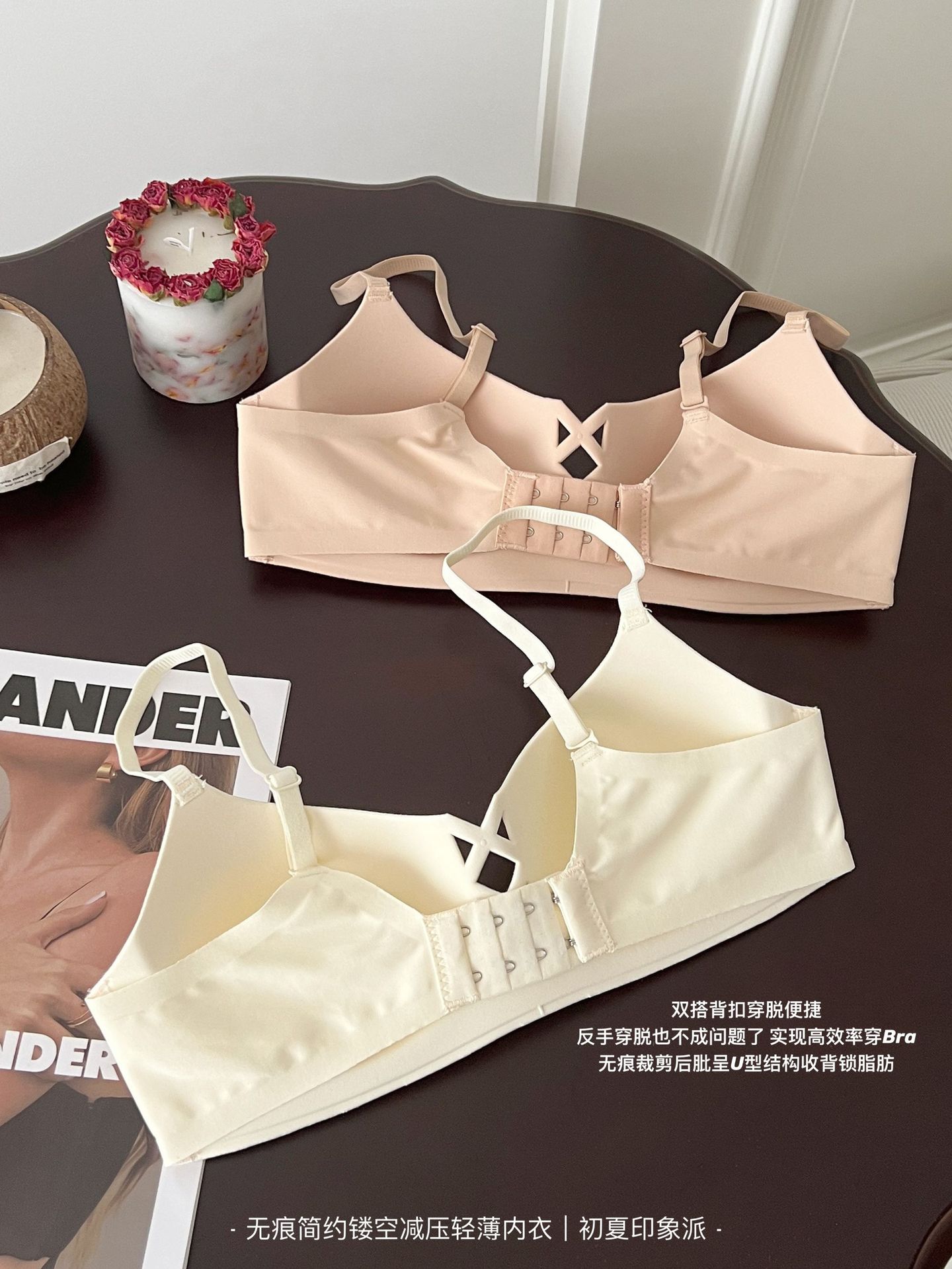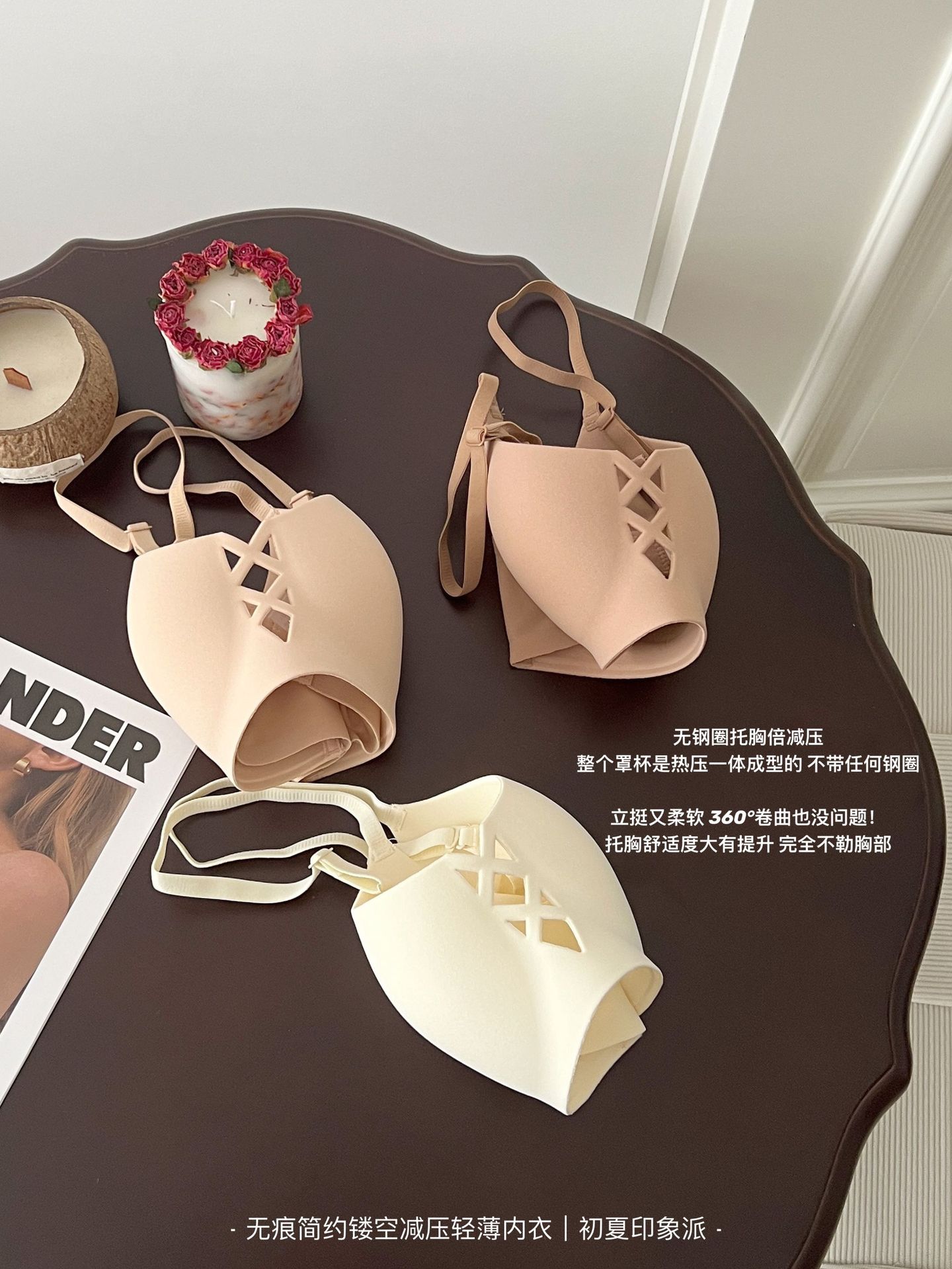 대외 무역 국경 간 인기 스타일 원활한 간단한 크로스 중공 얇고 통기성이 뛰어난 여성용 속옷 광택 작은 가슴 푸시 업 브라스토어 가기