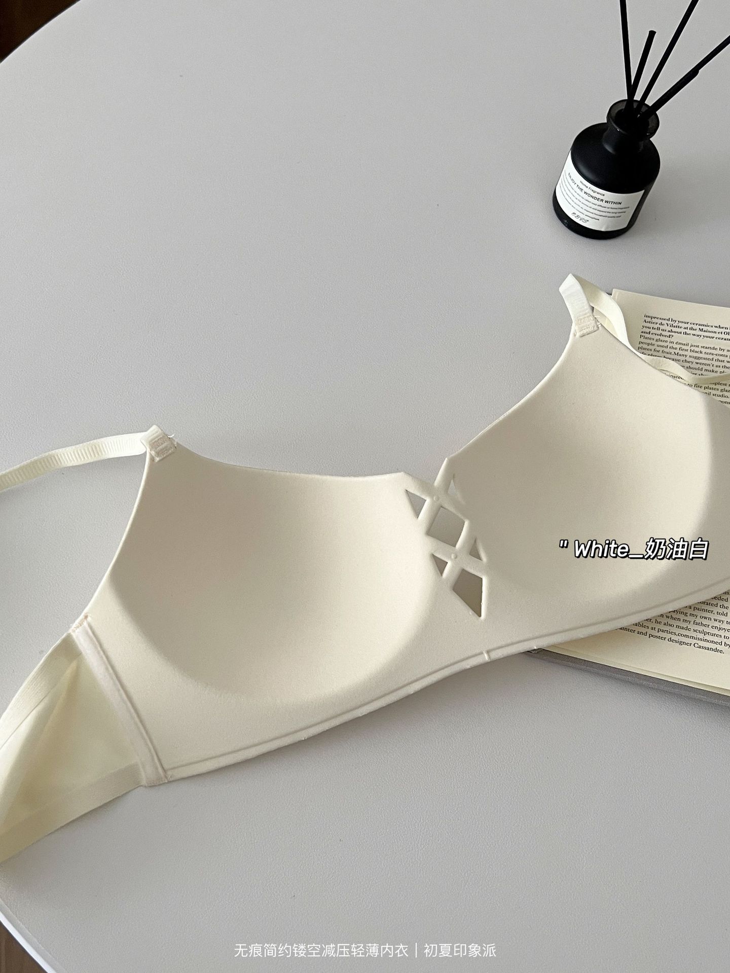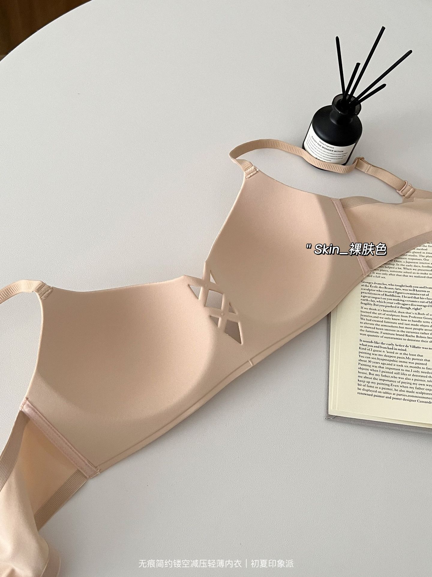 대외 무역 국경 간 인기 스타일 원활한 간단한 크로스 중공 얇고 통기성이 뛰어난 여성용 속옷 광택 작은 가슴 푸시 업 브라