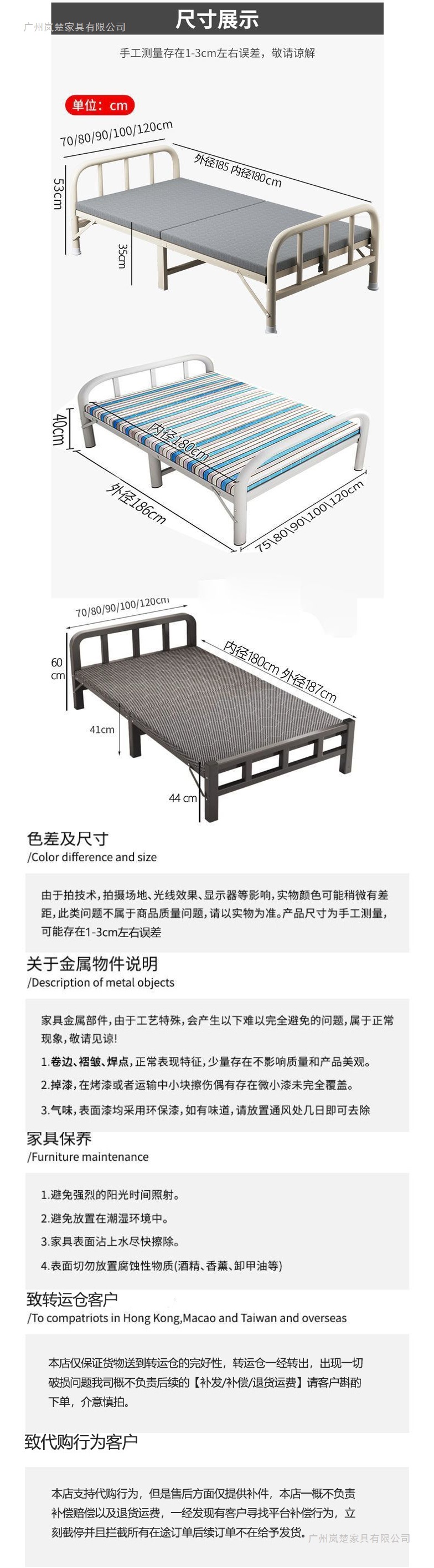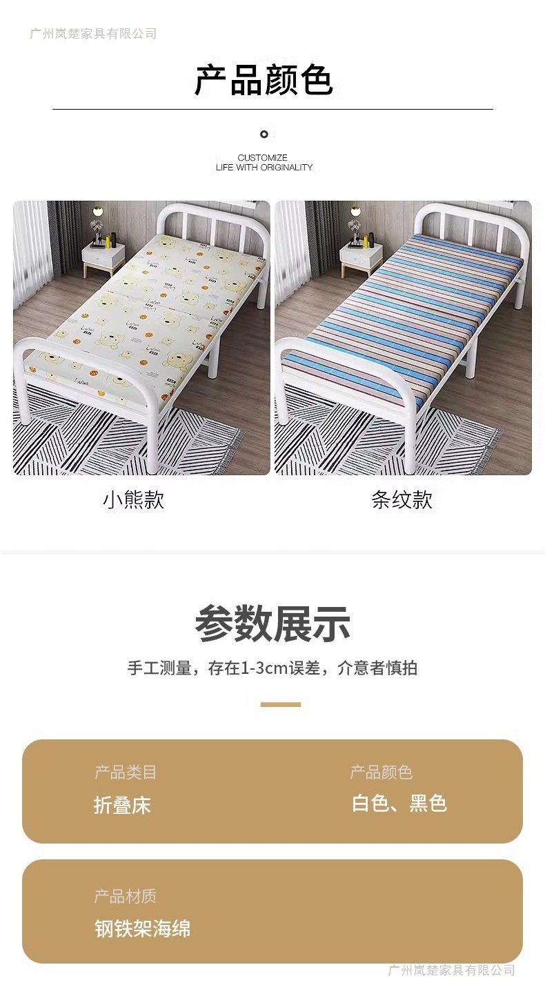 1인용 접이식 침대 시트, 간이침대, 사무실 낮잠용품, 기숙사 낮잠용 소형 침대, 임대주택, 성인용 철제 침대
