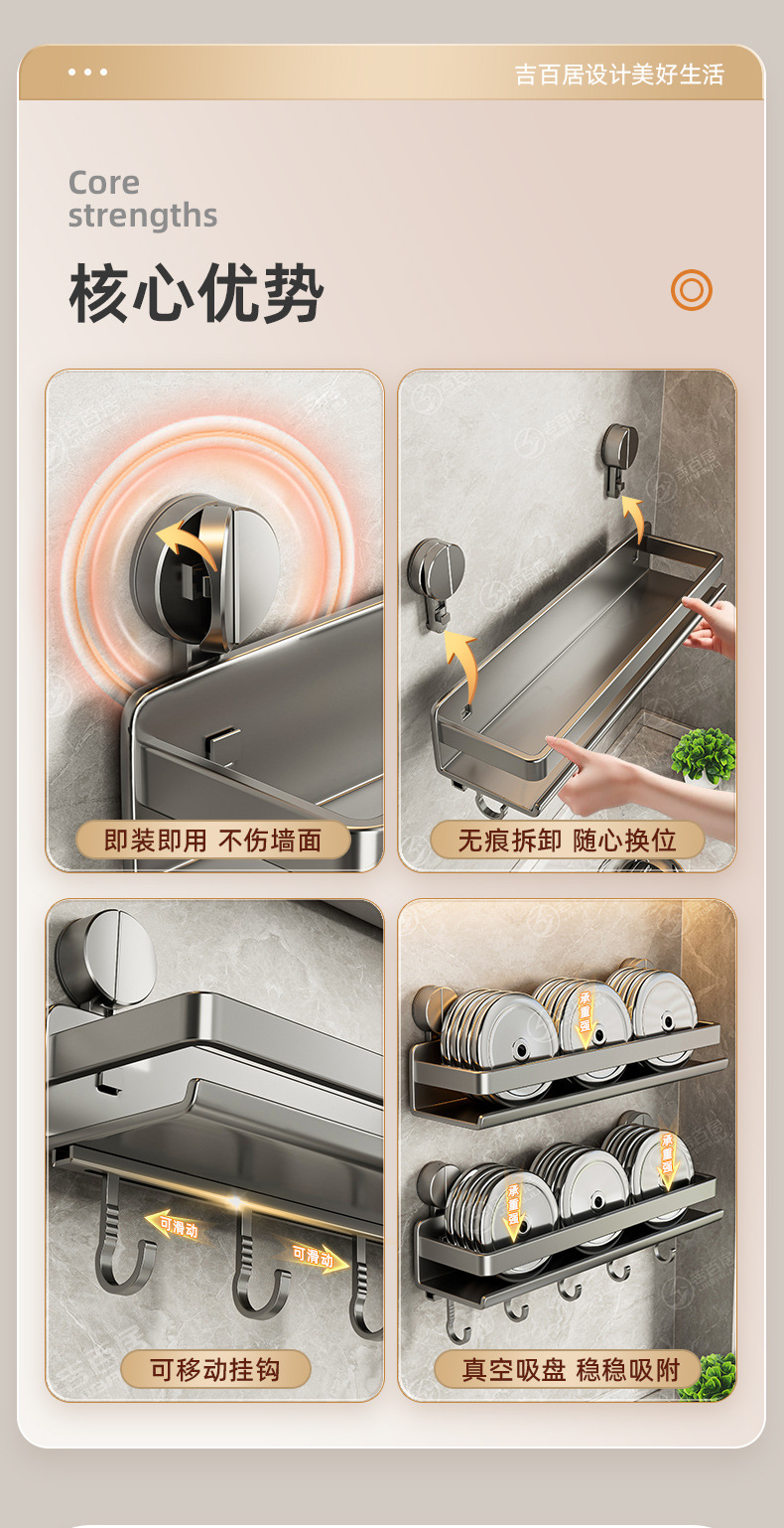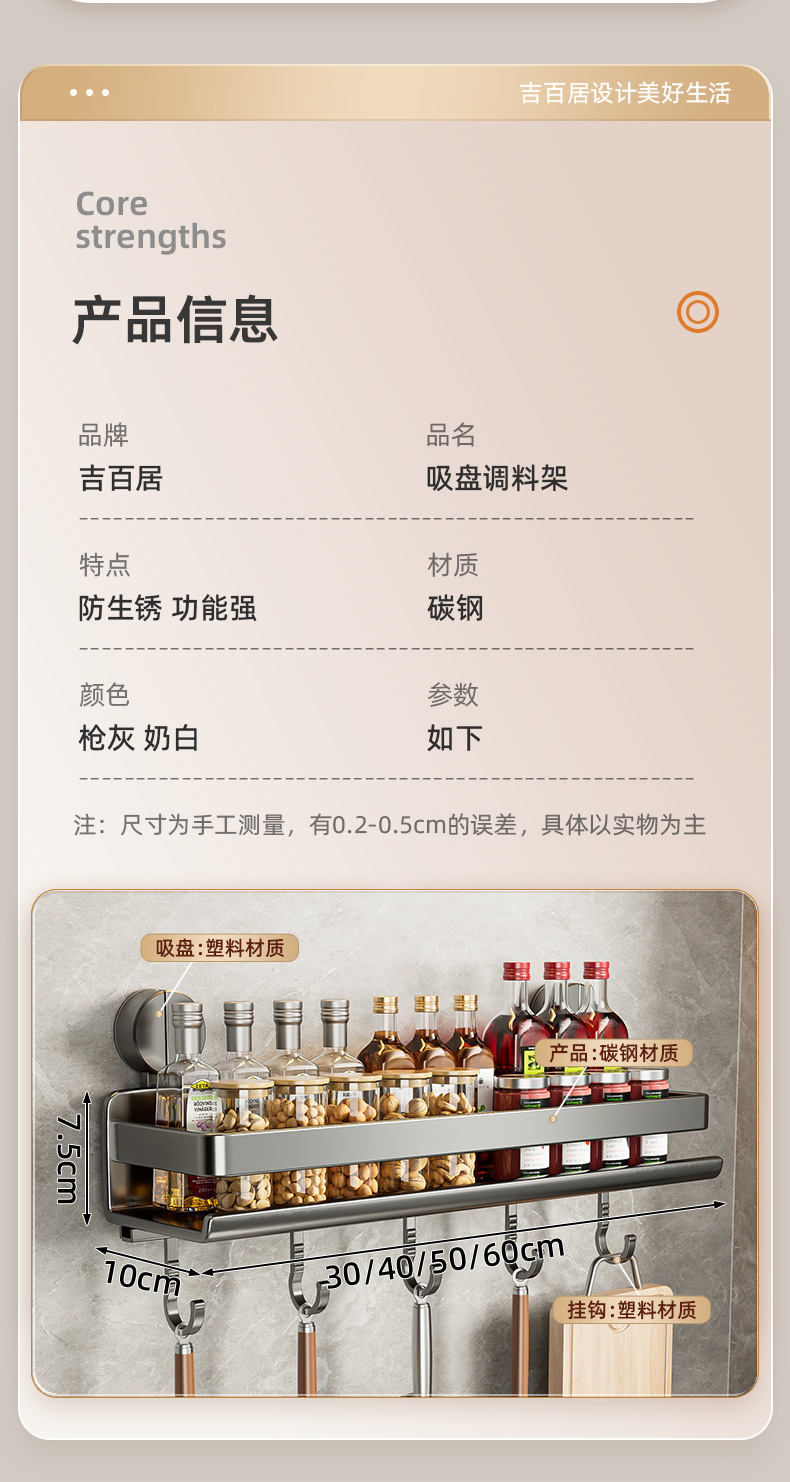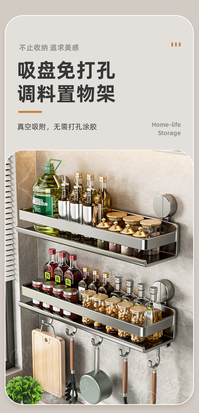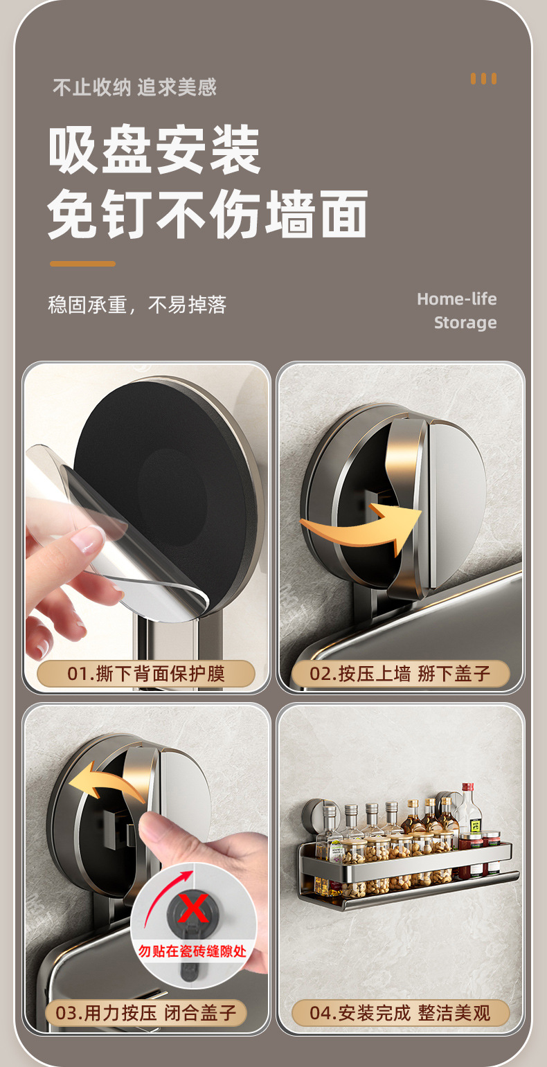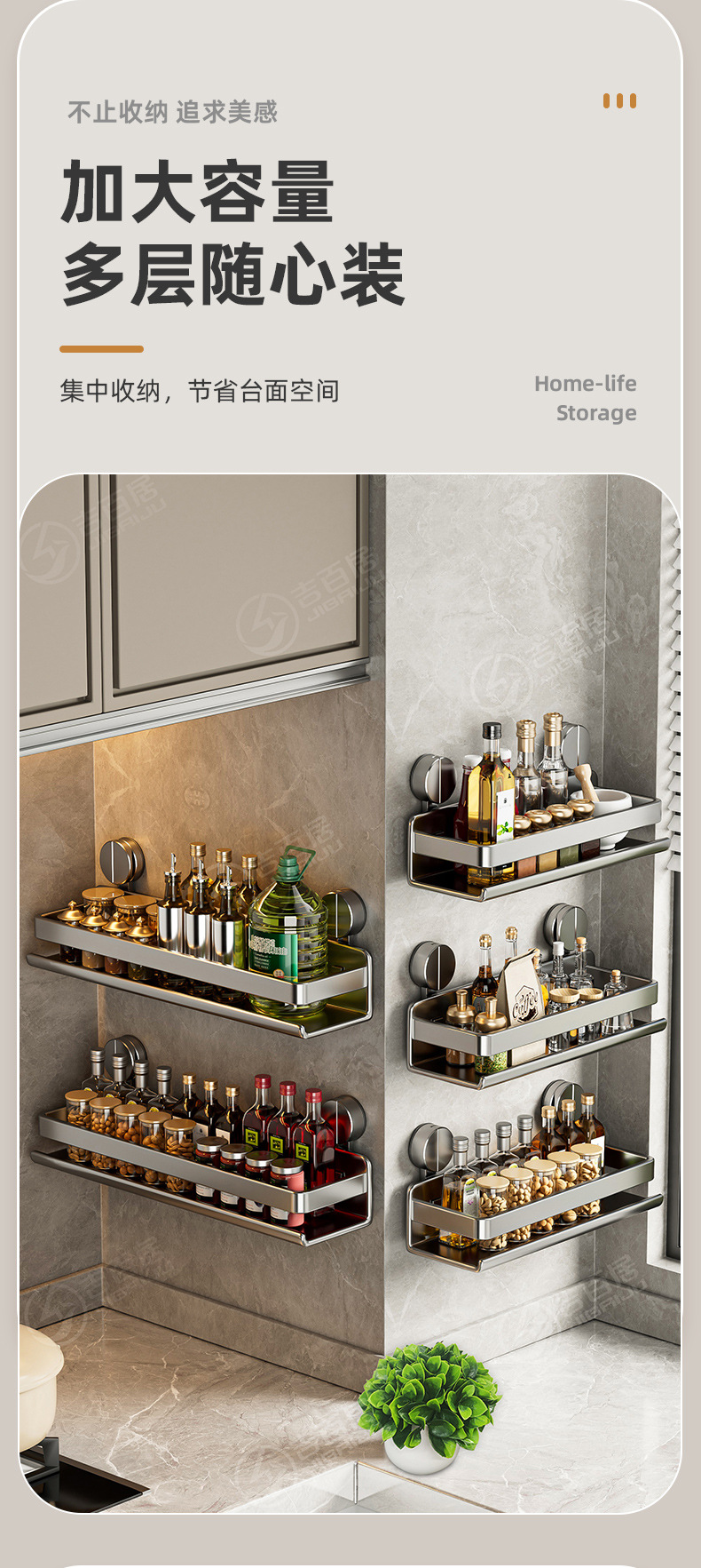 제조업체는 주방 선반, 흡입 컵, 향신료 랙, 펀치 없는 벽걸이형 조미료 가정용 제품 벽을 공급합니다.스토어 가기