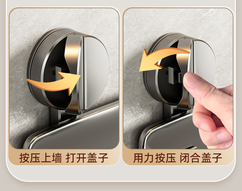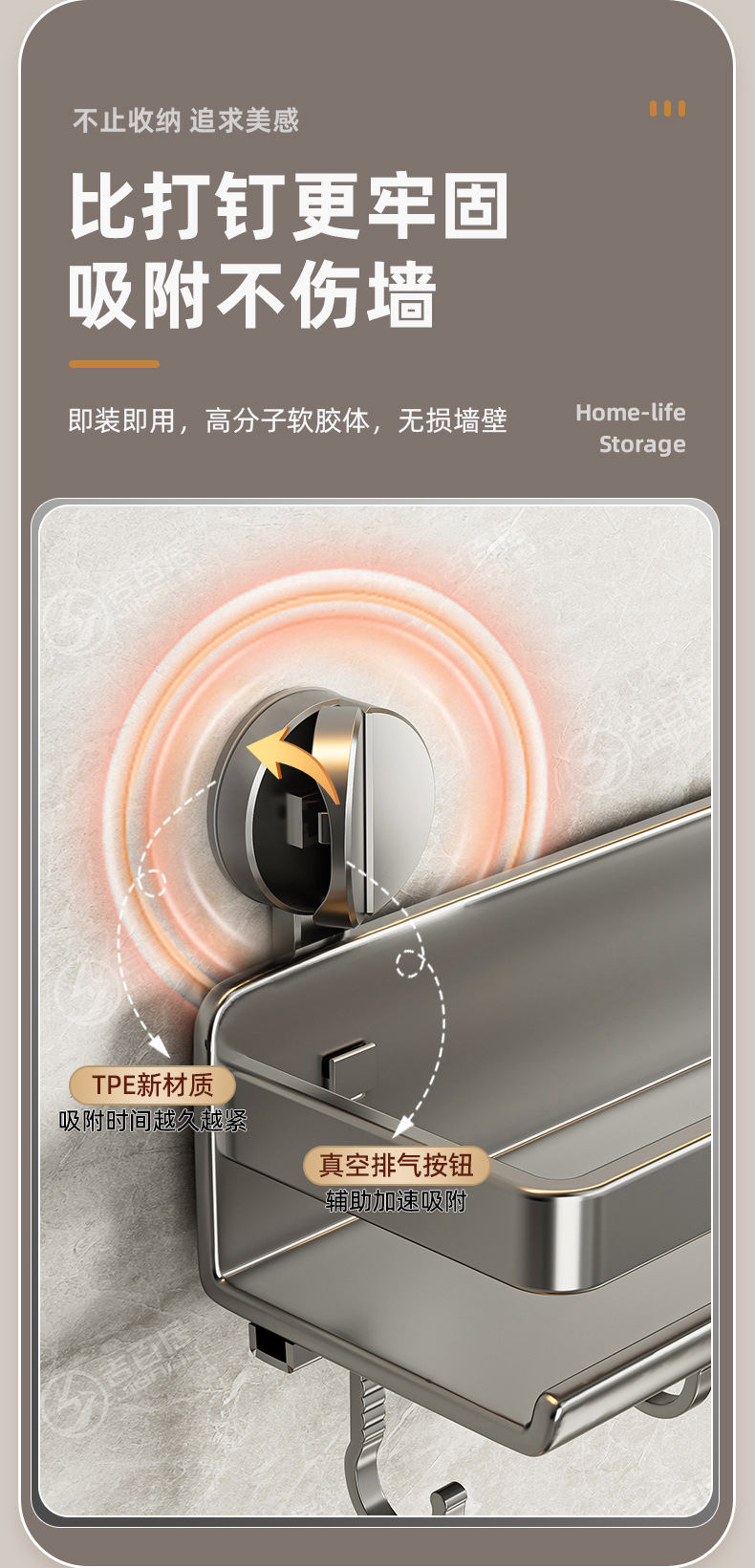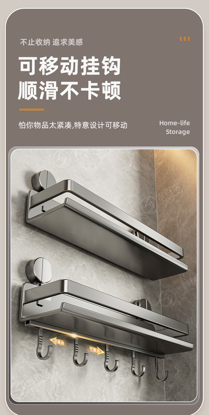 • 강력한 흡입 컵 - 후크가 있는 단일 레이어 40 - 건 그레이 [탈착 가능]