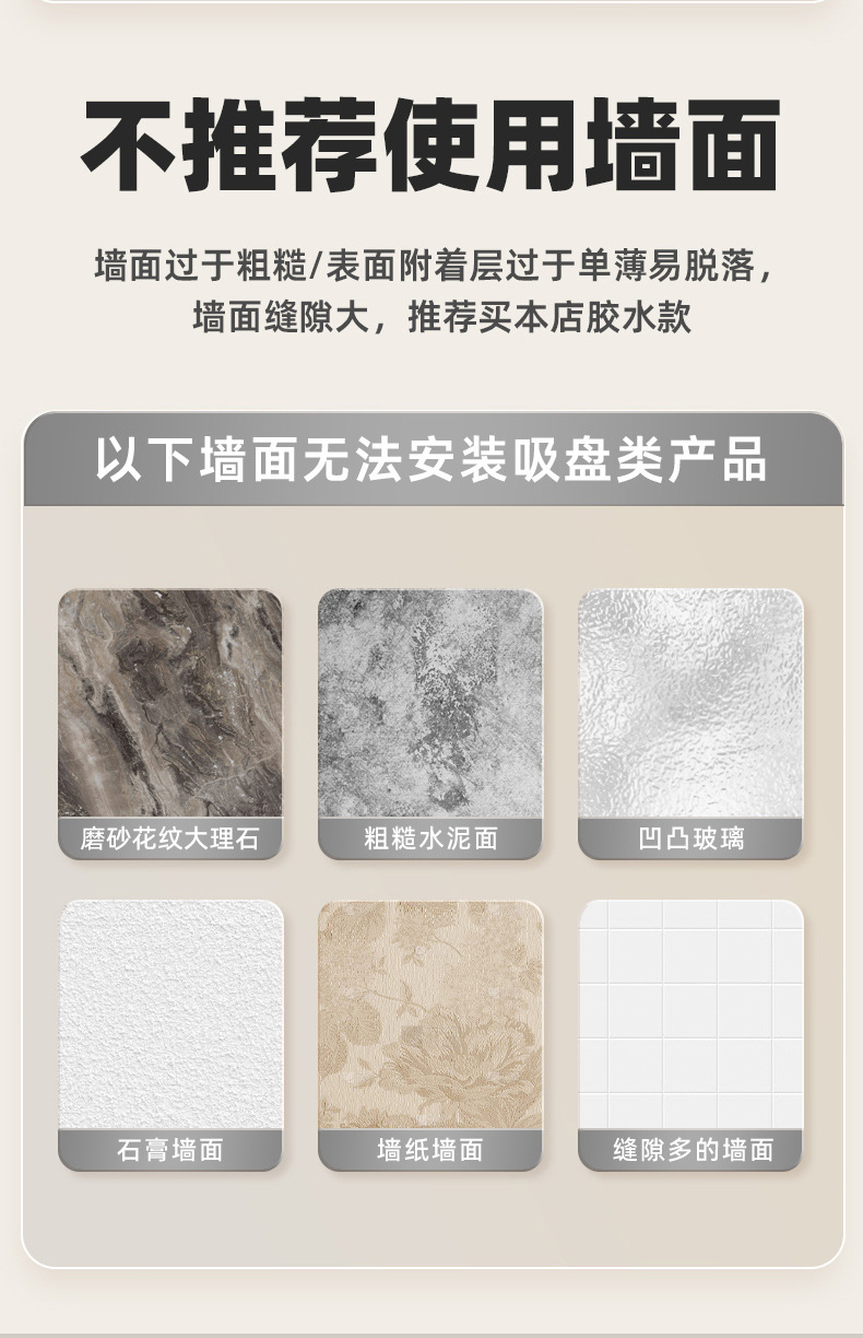 • 강력한 흡입 컵 - 후크가 있는 단일 레이어 50 - 유백색 [탈착 가능]