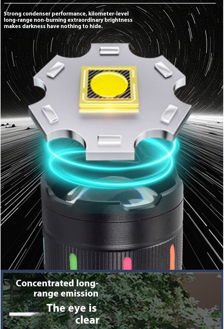 707:白激光灯泡可伸缩调焦内置四节18650 1500毫安电池共计6000毫安,COB 白光,强-弱-闪-COB亮-COB弱-关,六功能开关,尾部电显