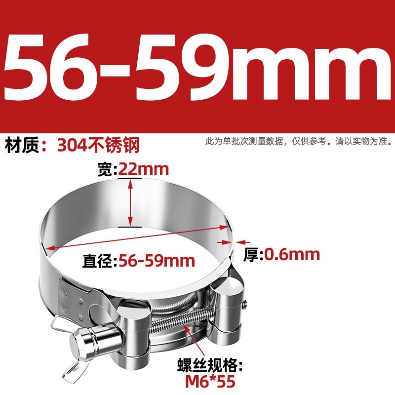 • 접착제 포함 56-59mm(직경) [304 접착 스트립으로 손으로 조임] 2inch (강철 와이어 호스 권장)