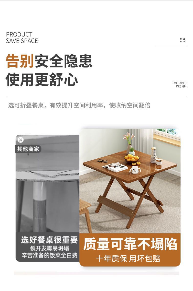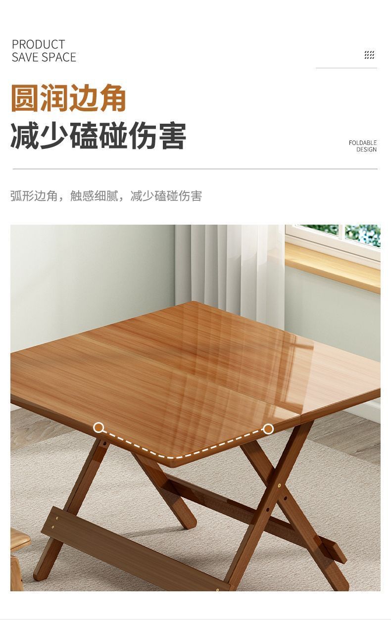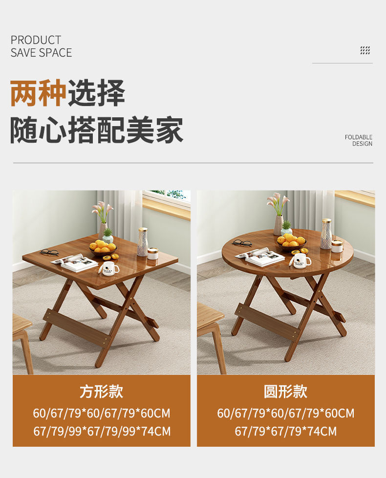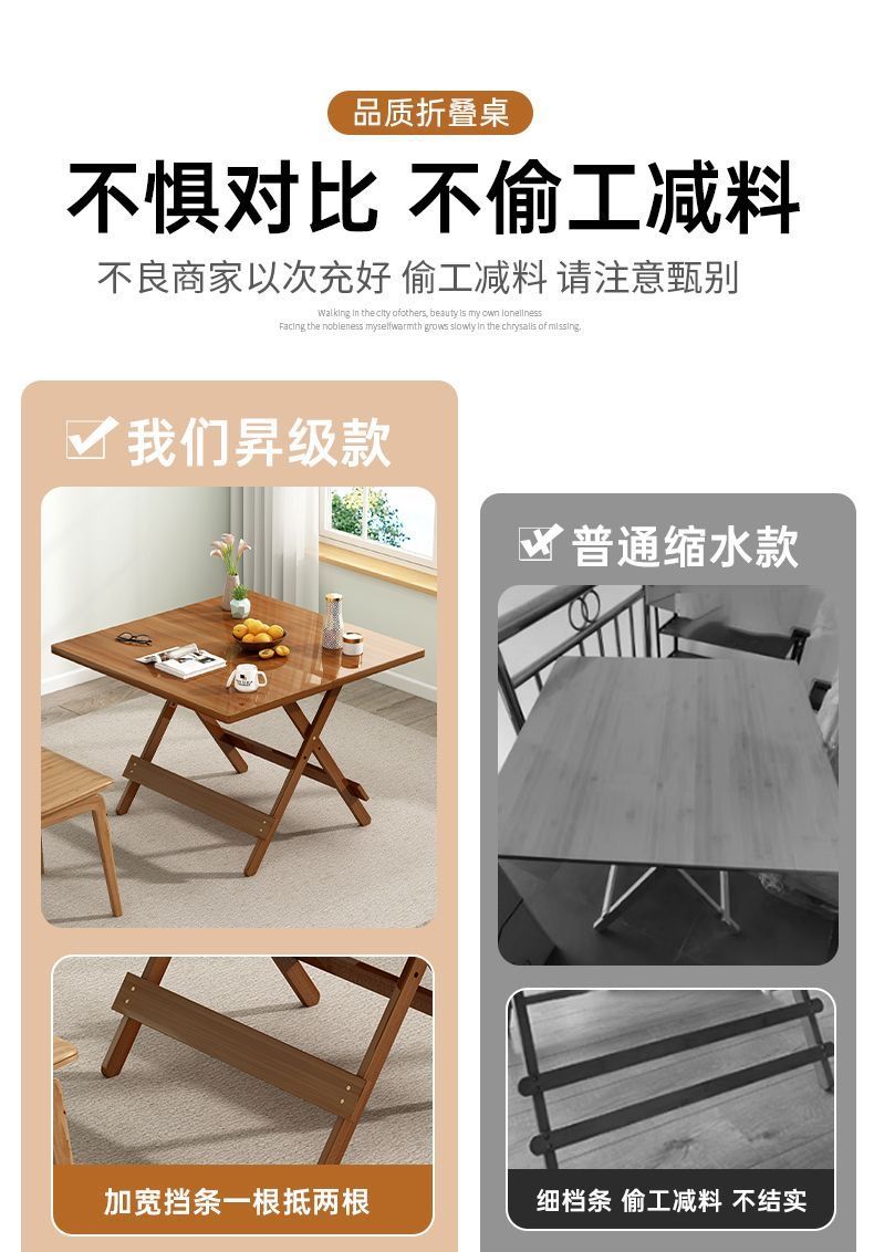 작은 가족을 위한 간단한 접이식 테이블, 정사각형 테이블, 단단한 나무, 간단한 휴대용 야외 발코니 식탁, 가정용 식탁스토어 가기