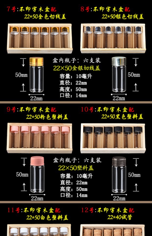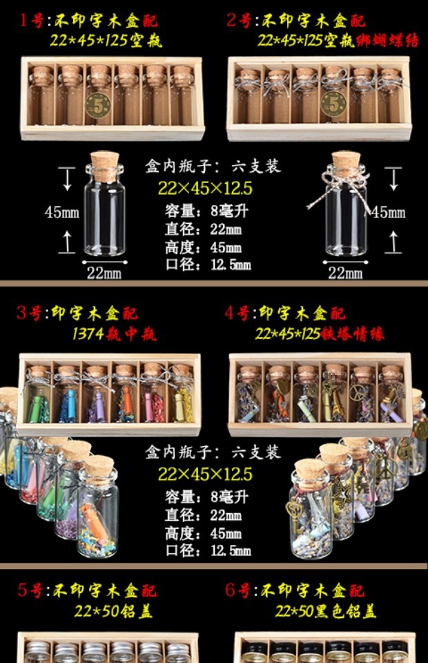 나무 상자 보관 유리병 소원 병 뚜껑이 있는 작은 유리병 세트 선물 상자 투명 유리병 신제품스토어 가기