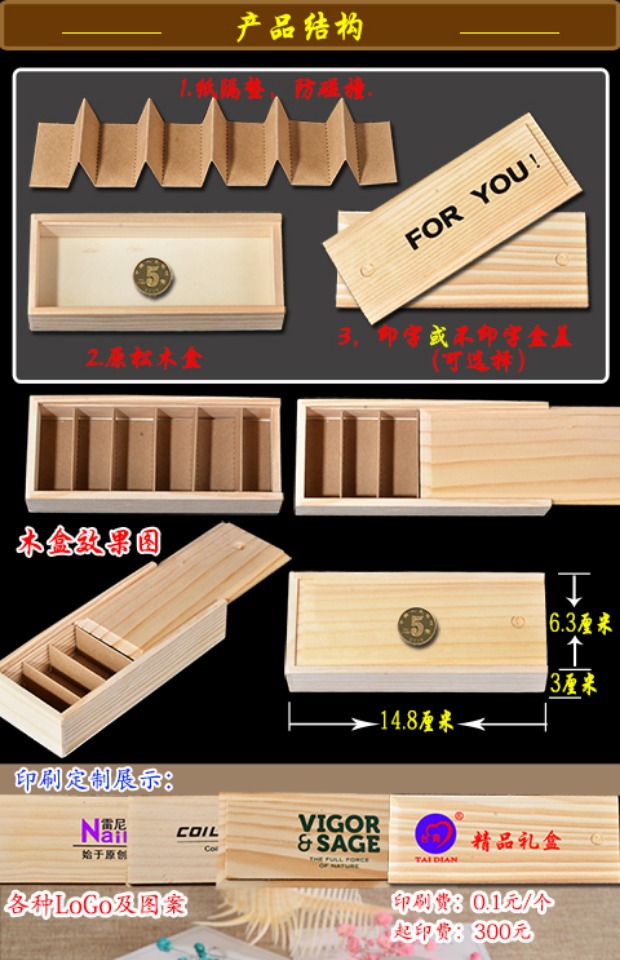 나무 상자 보관 유리병 소원 병 뚜껑이 있는 작은 유리병 세트 선물 상자 투명 유리병 신제품